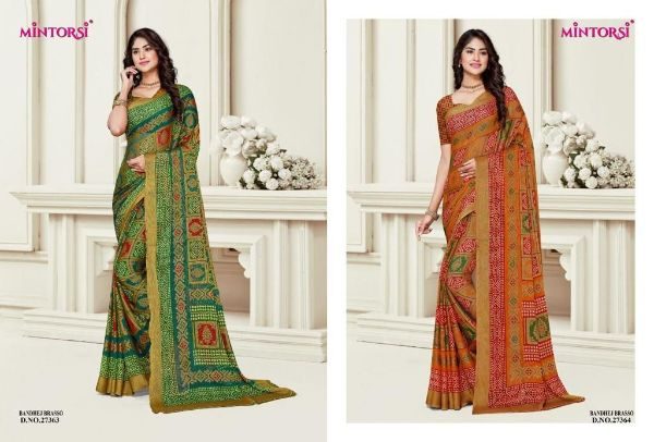 Mintorsi Presents Bandhej Brasso 27361 To 27366 Series Fancy Chiffon Brasso Sarees Collection At Wholesale Price