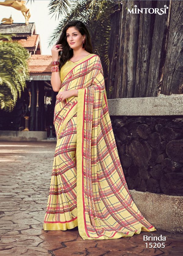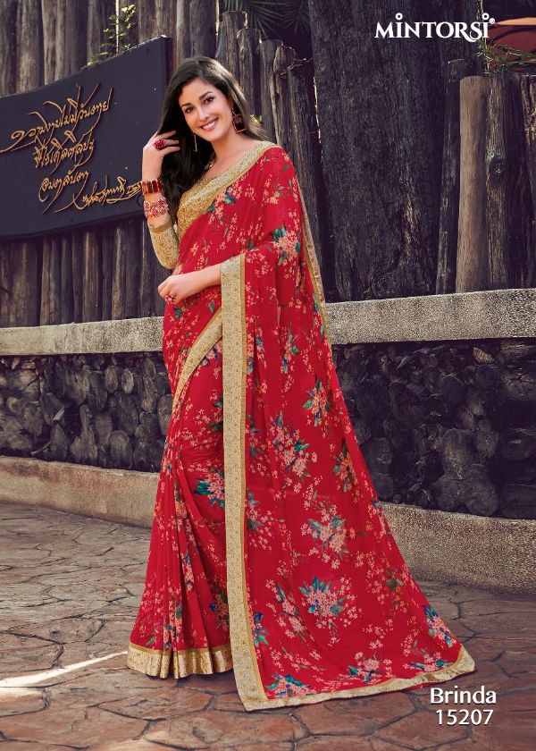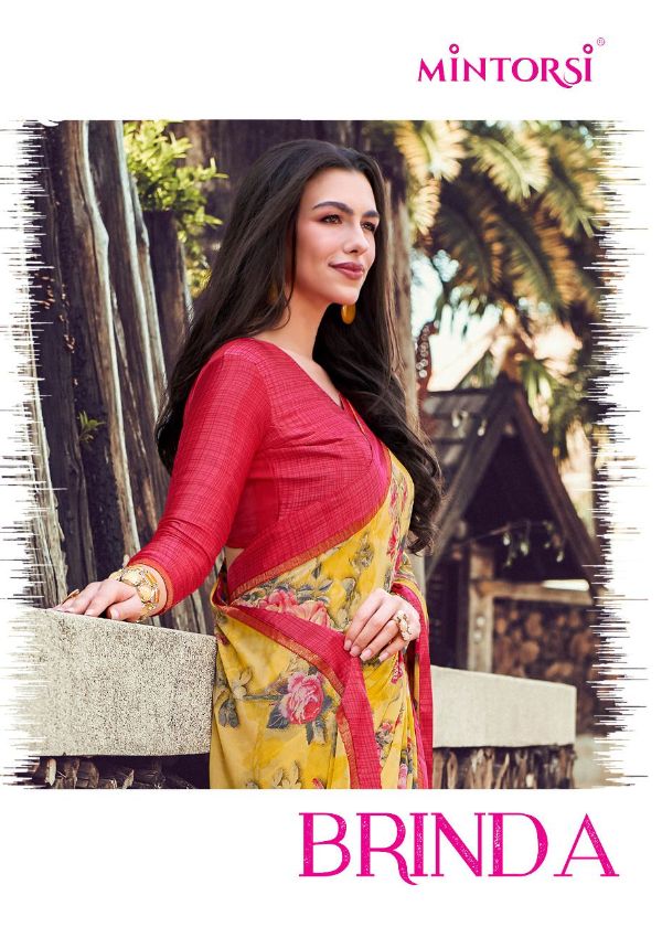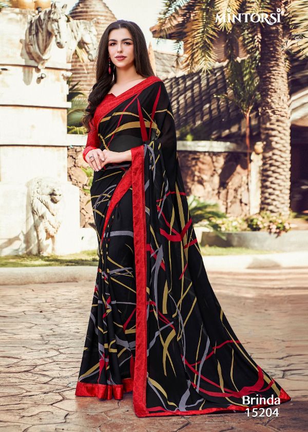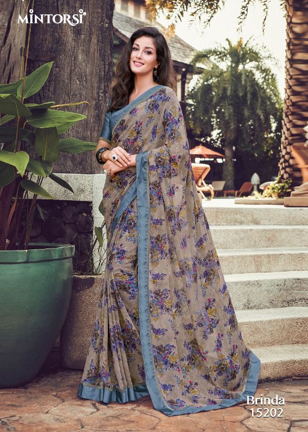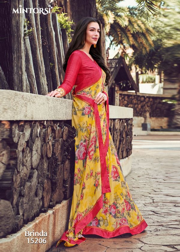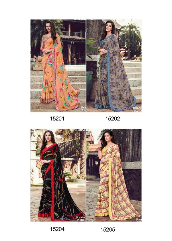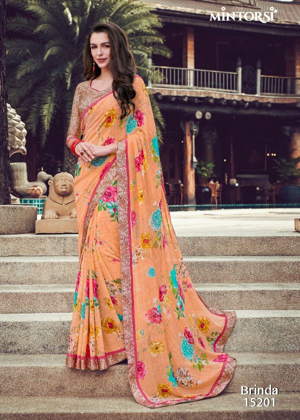 Mintorsi Presents Brinda 15201-15208 Series Weightless With Satin Lace Satin Blouse Fancy Saree Collection