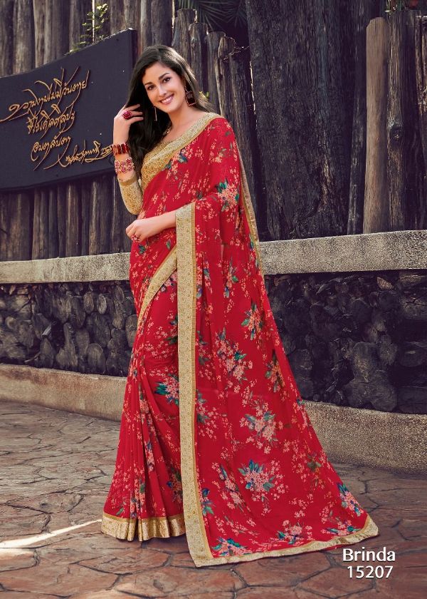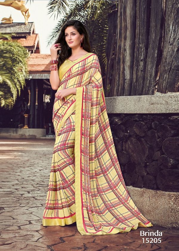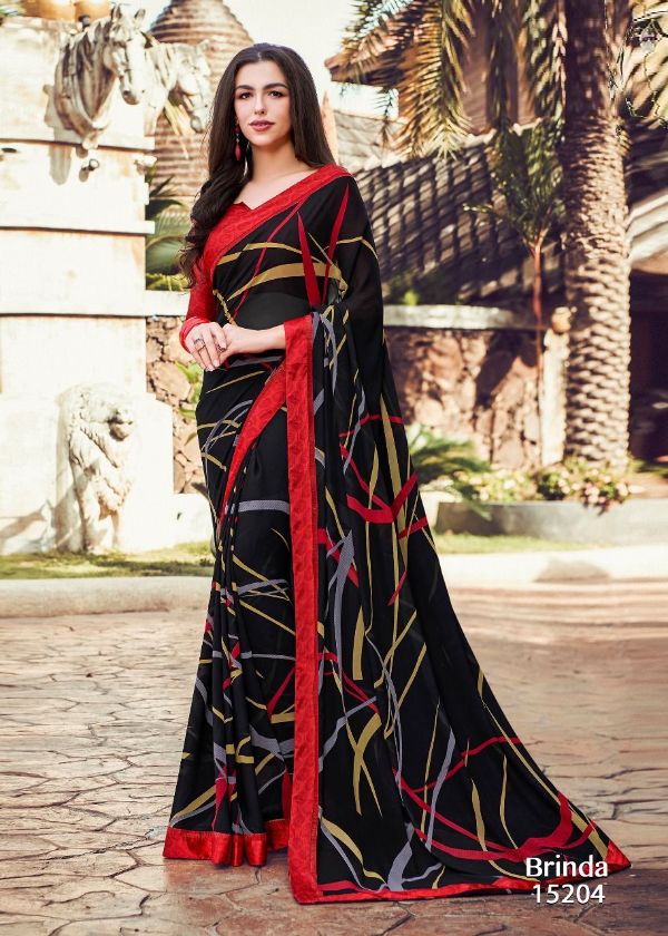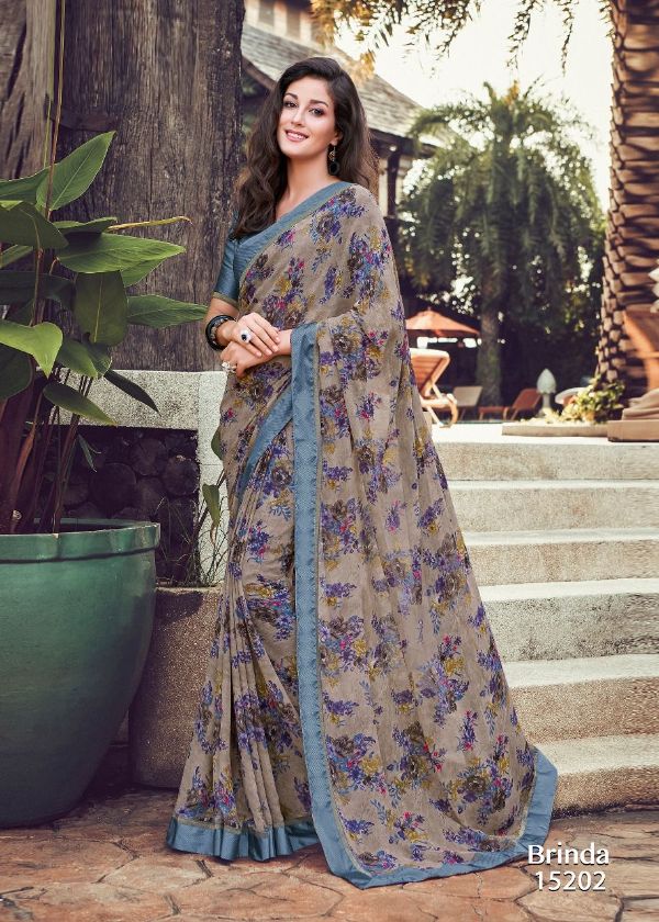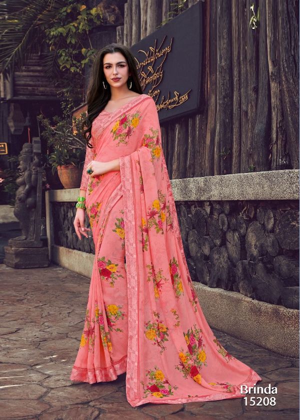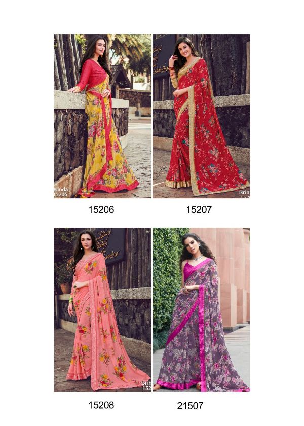 Mintorsi Presents Brinda 15201-15208 Series Weightless With Satin Lace Satin Blouse Fancy Saree Collection