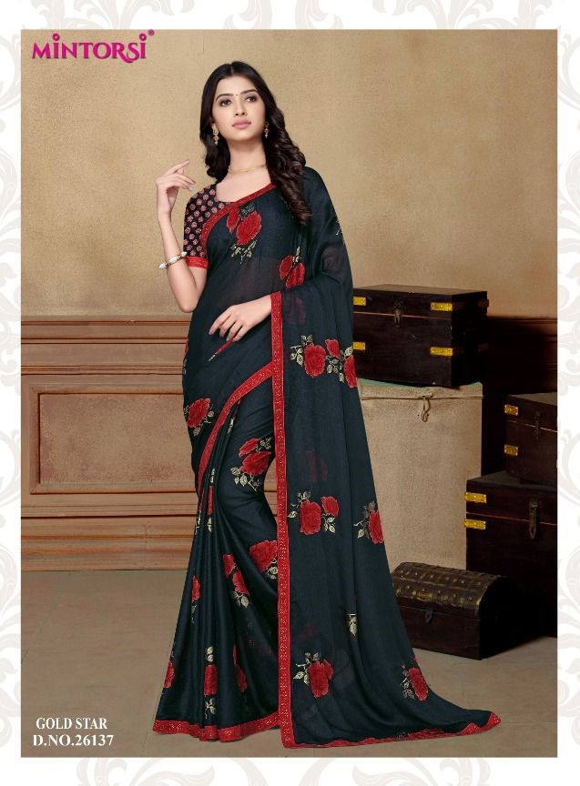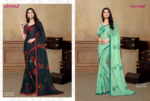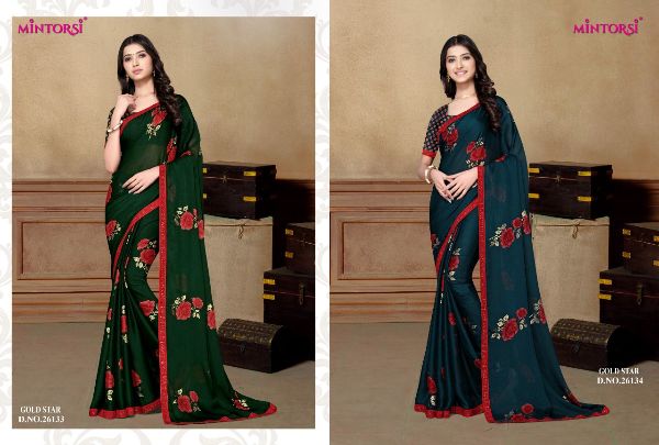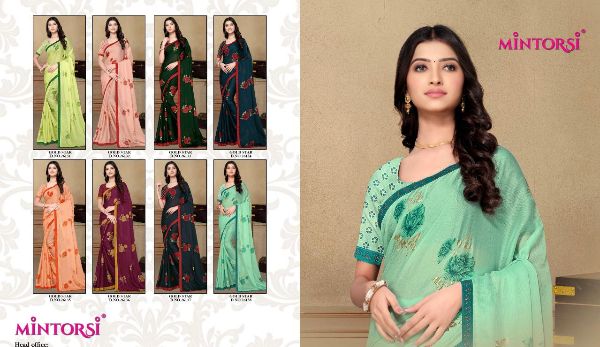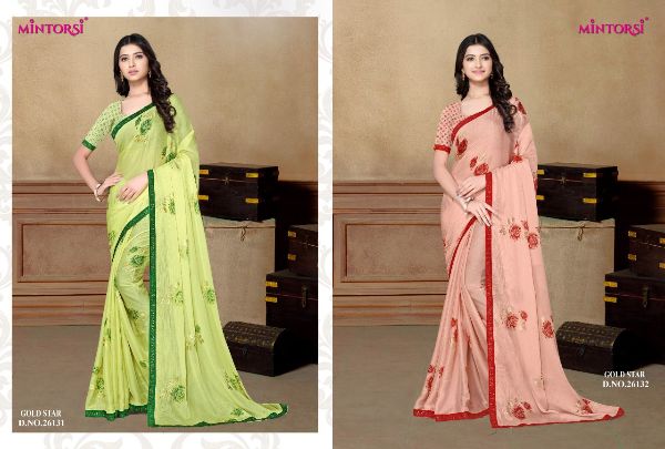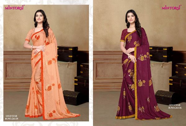 Mintorsi Presents Gold Star 26131-26138 Series Chiffon With Exclusive Foil Print Fancy Saree Collectiomn