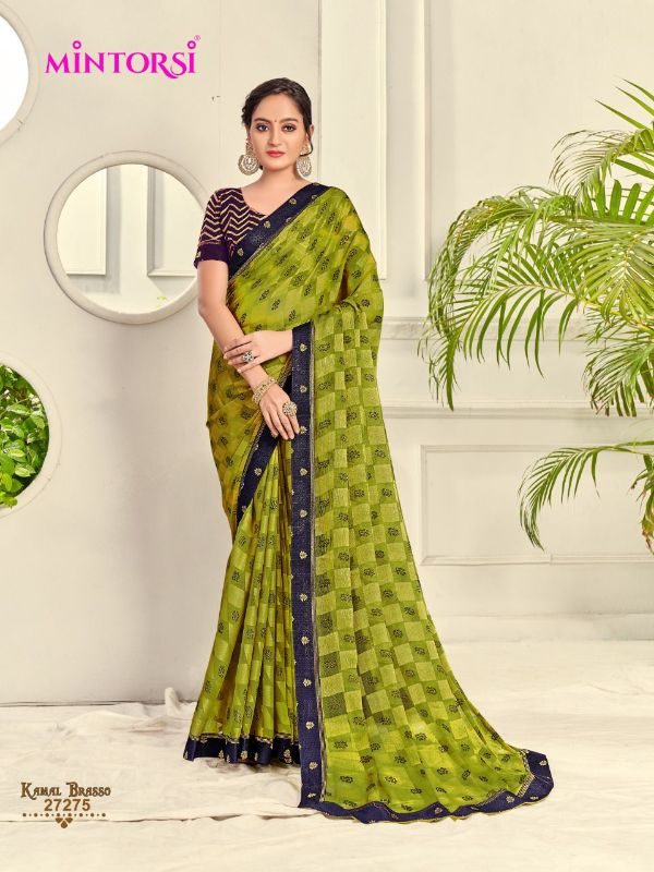 Mintorsi Presents Kamal Brasso 27271 - 27278 Series Casual Traditional Wear Chiffon Saree At Wholesale Price