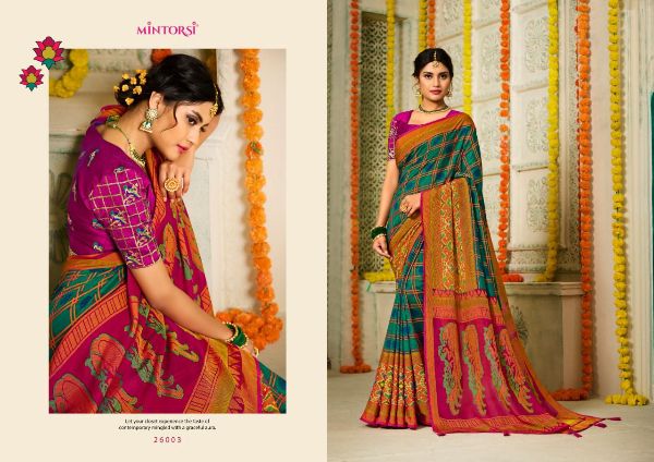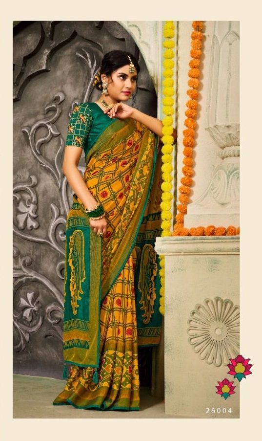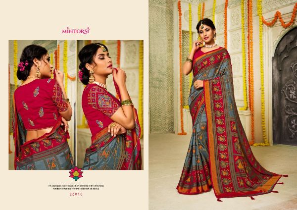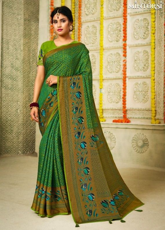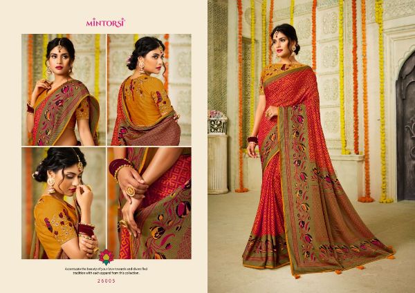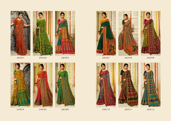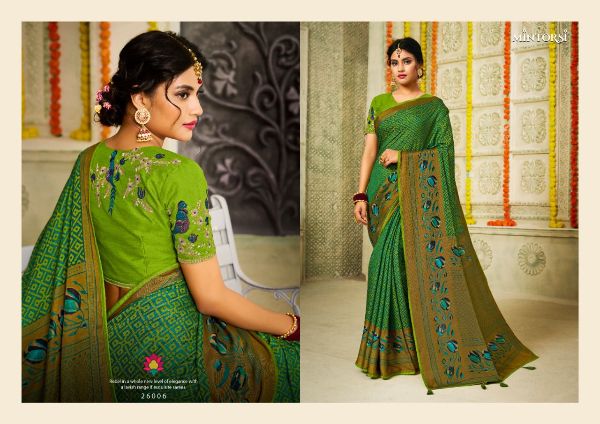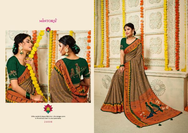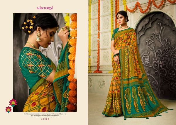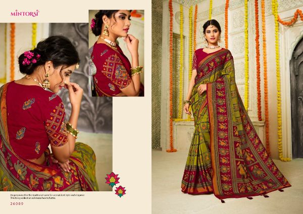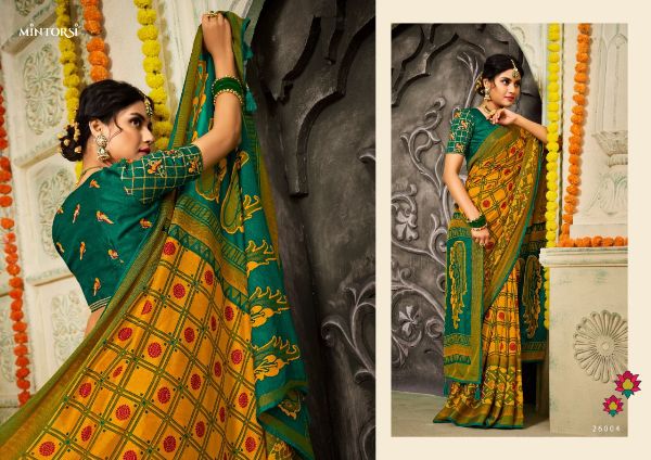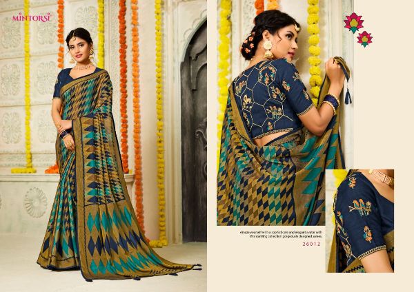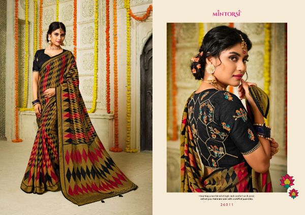 Mintorsi Presents Karma 26001-26012 Series Silk Brasso With Exclusive Print And Lace Piping Saree Collection#1875