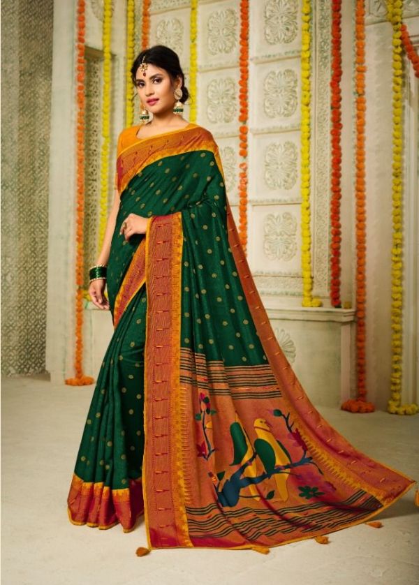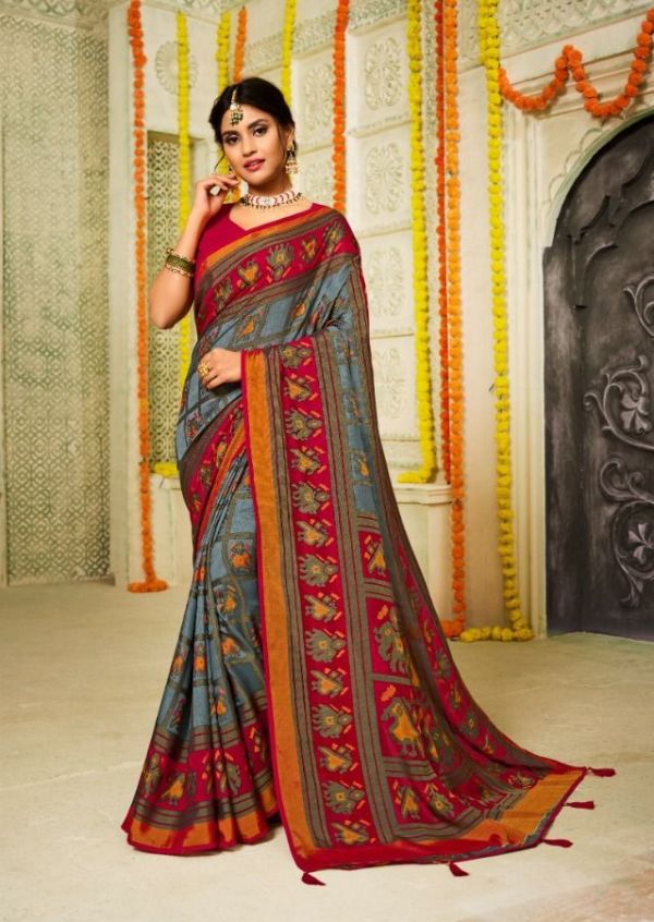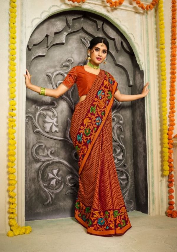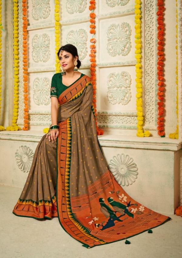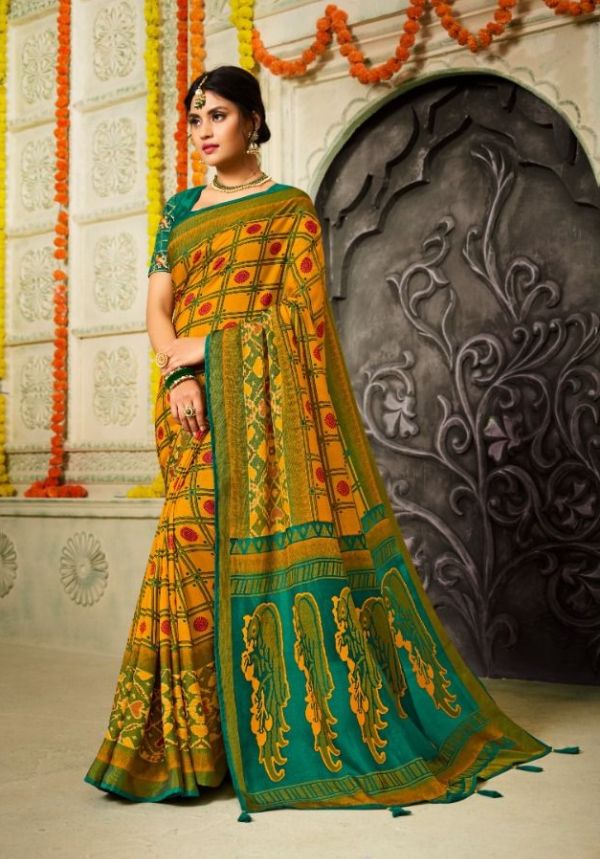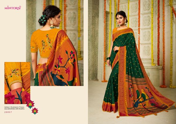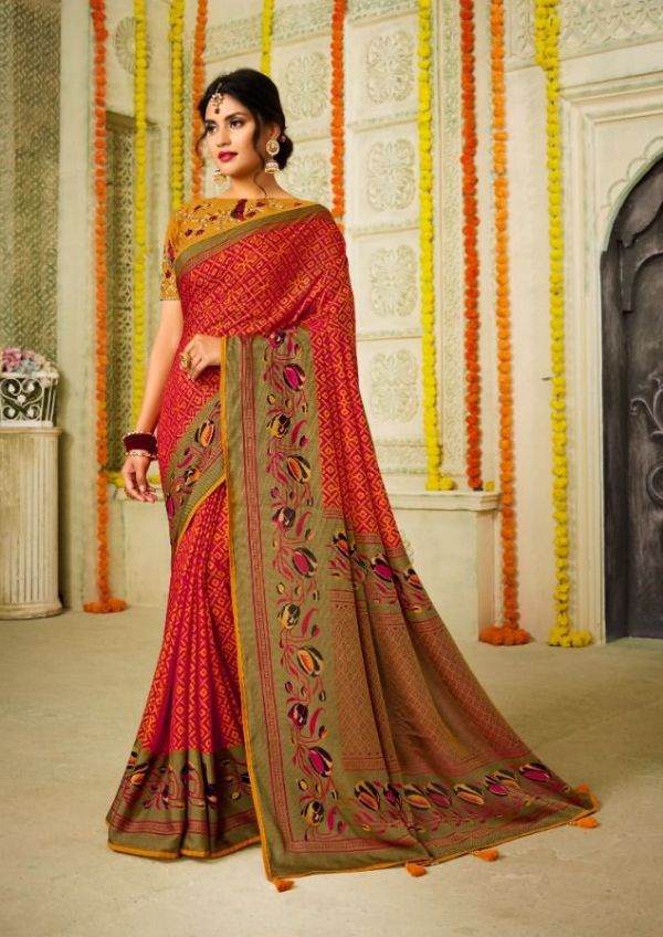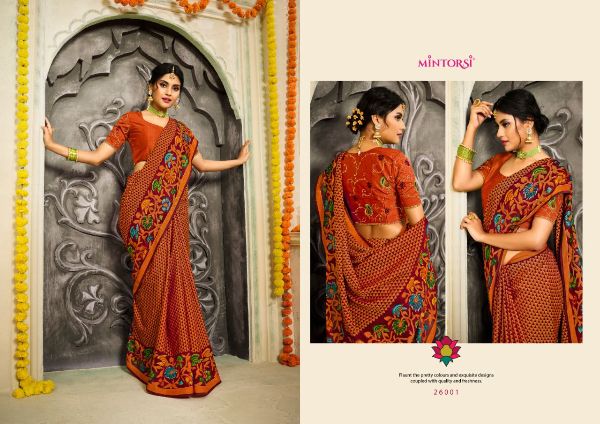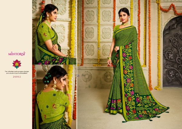 Mintorsi Presents Karma 26001-26012 Series Silk Brasso With Exclusive Print And Lace Piping Saree Collection#1875