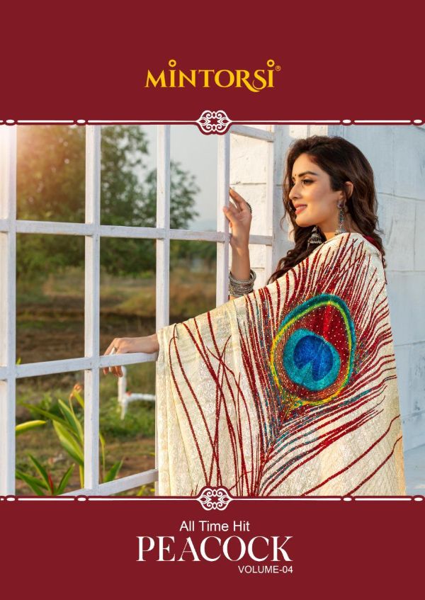Mintorsi Presents Peacock Vol-4 200301-200308 Series Silk Jacquard With Lace Piping And Stone Diamond Work Saree Colletion#1950