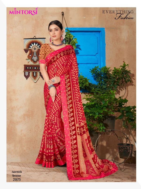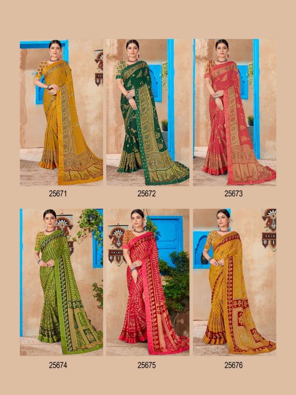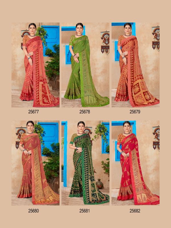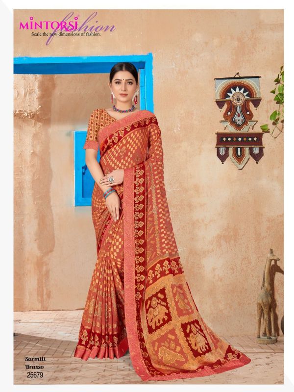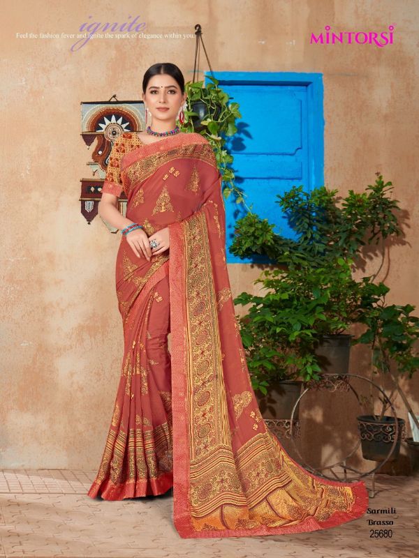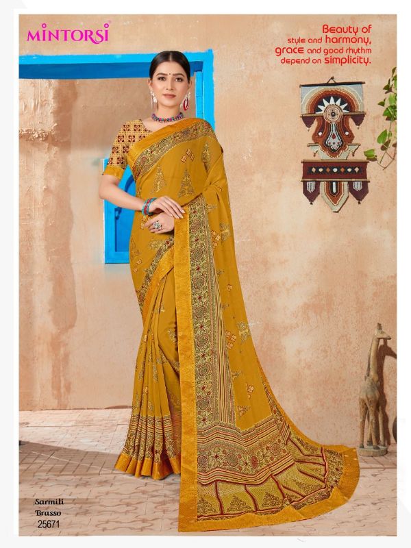 Mintorsi Presents Samvavi 25691-25696 Series Chiffon Brasso With Exclusive Lace Piping And Latkan Fancy Saree Collection#1620