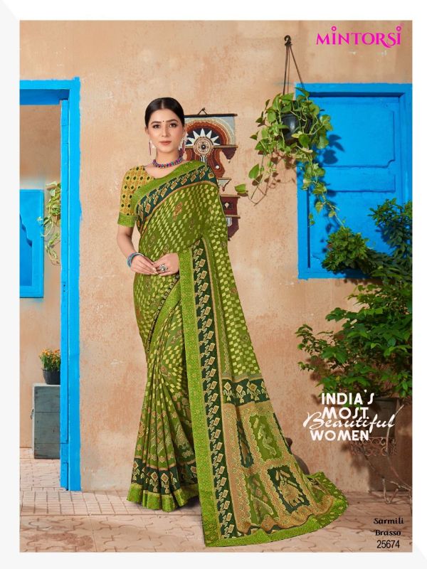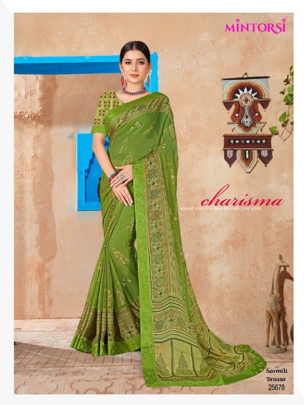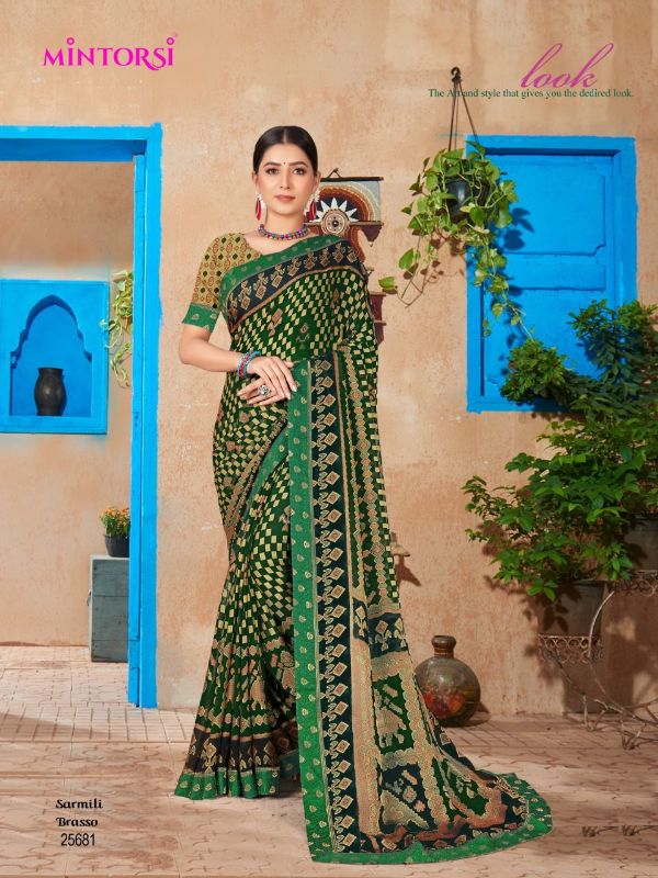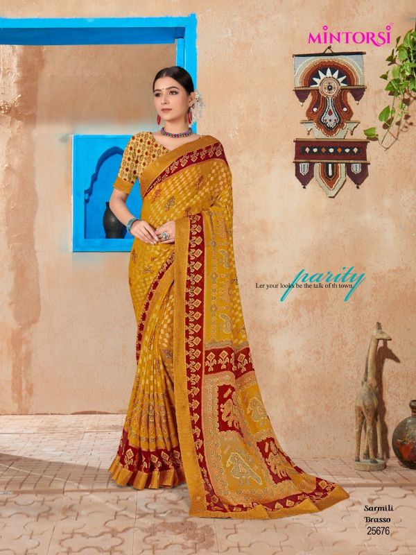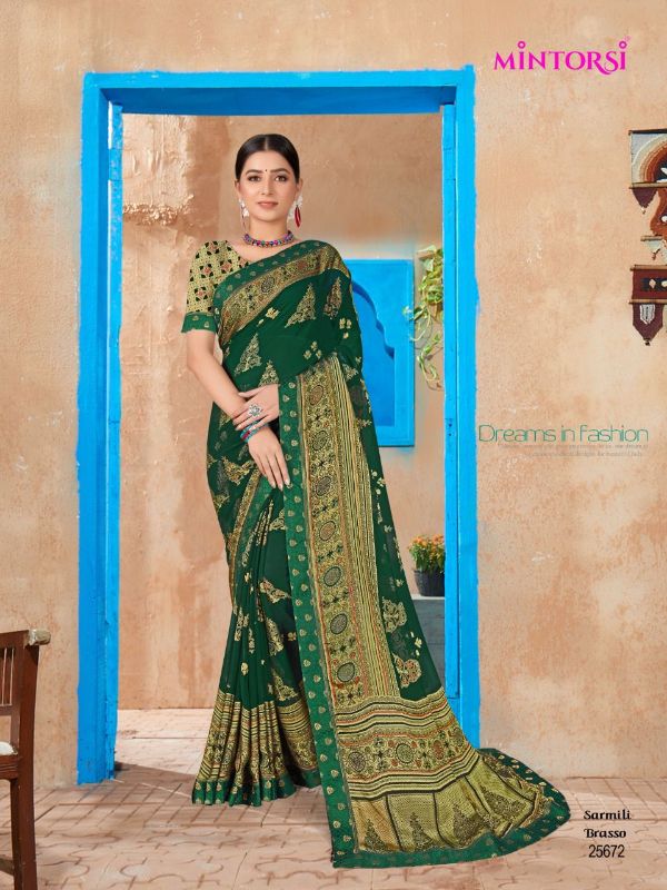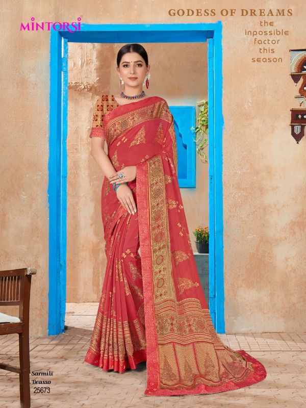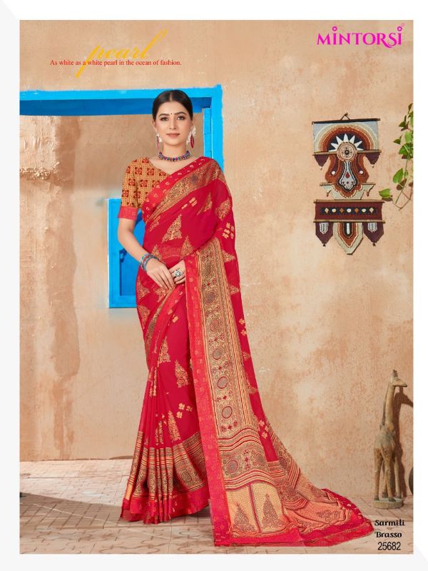 Mintorsi Presents Samvavi 25691-25696 Series Chiffon Brasso With Exclusive Lace Piping And Latkan Fancy Saree Collection#1620