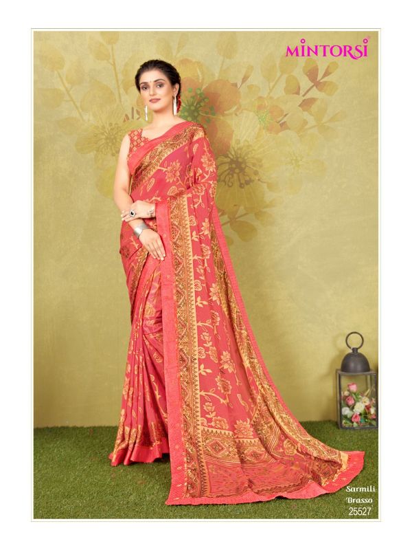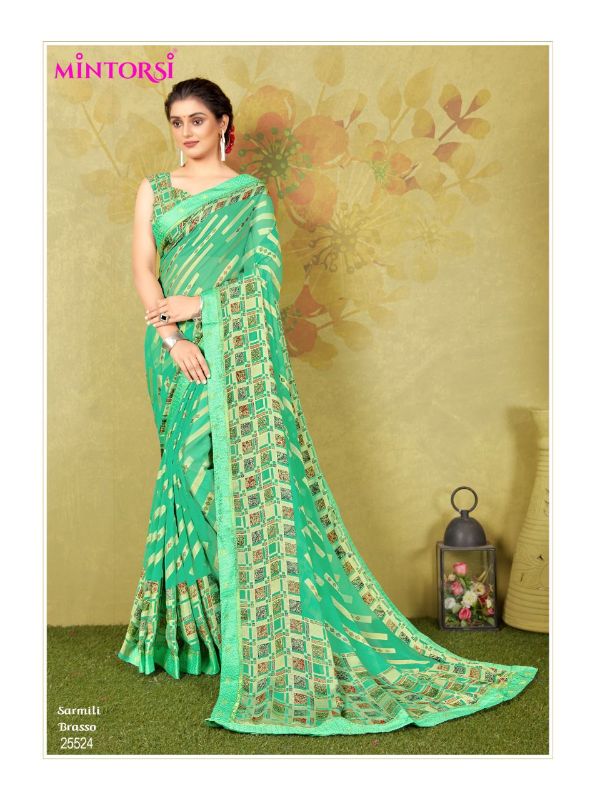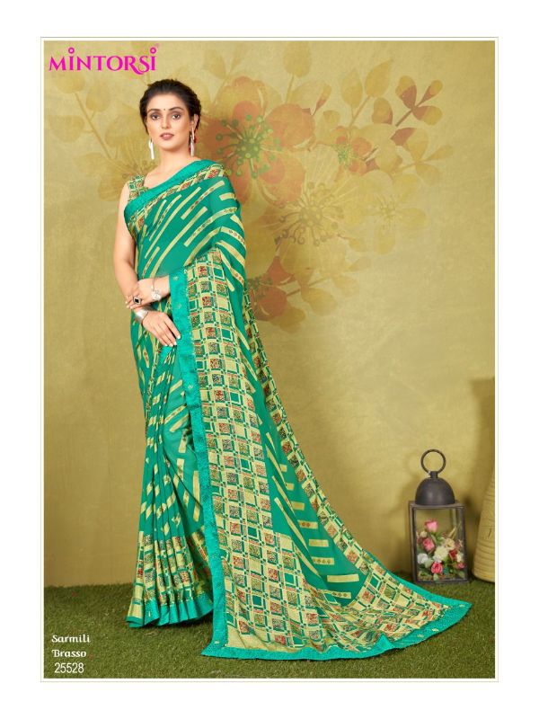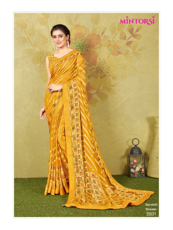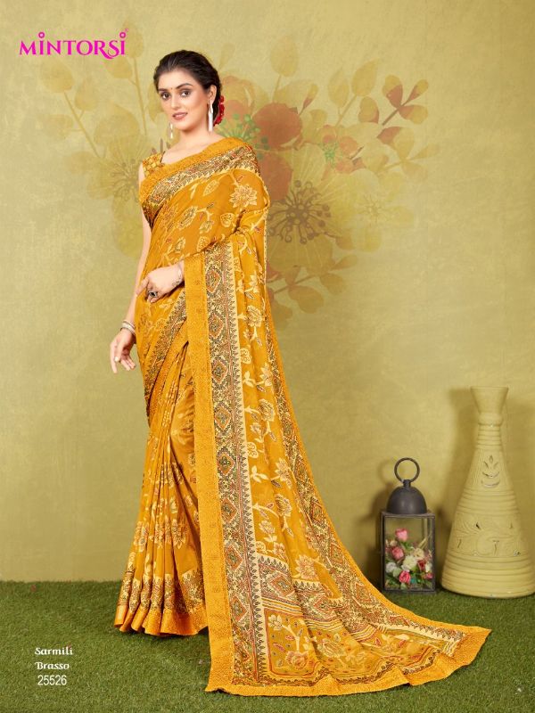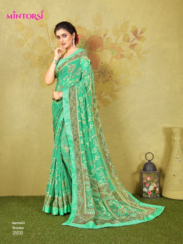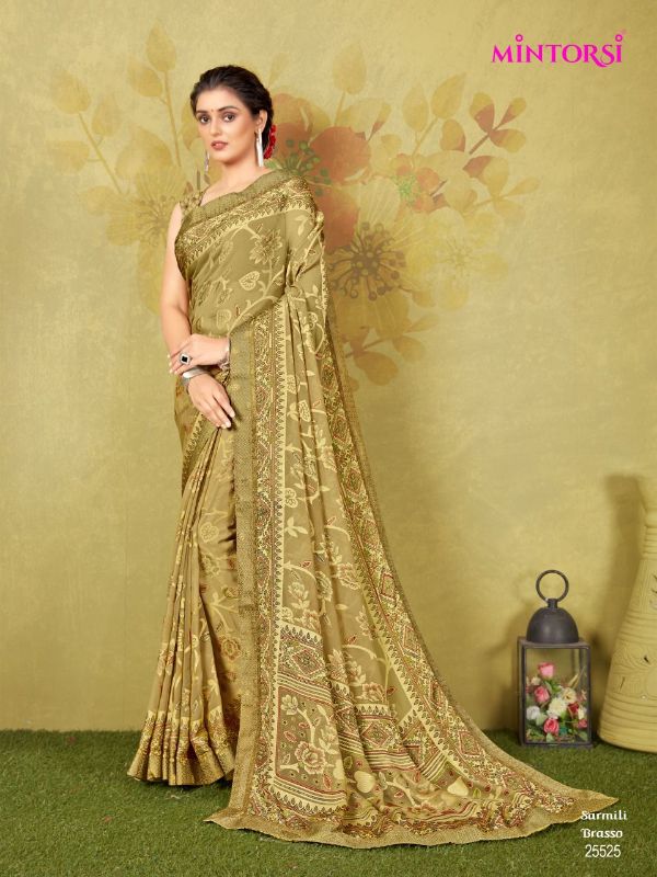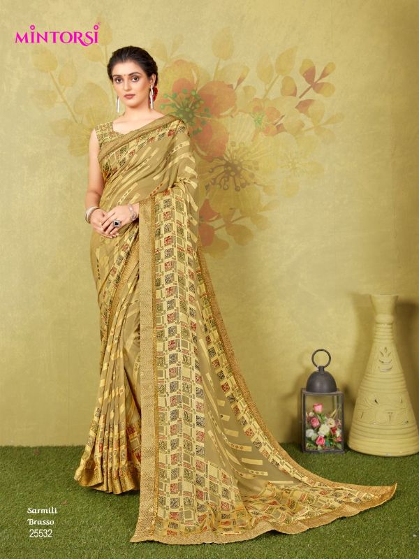 Mintorsi Presents Sarmili Brasso 25521-25532 Series Jhilmil Brasso Print With Exclusive Lace Saree Collection#1573
