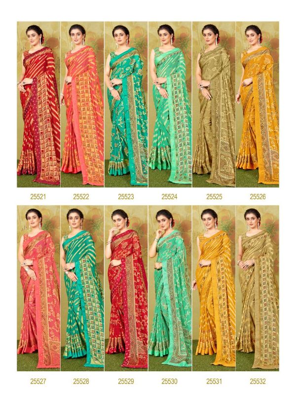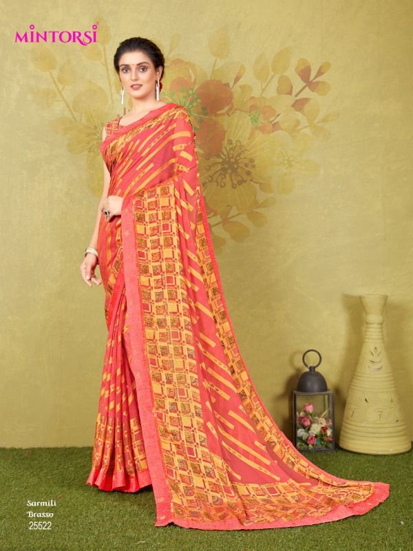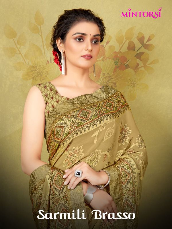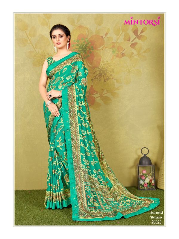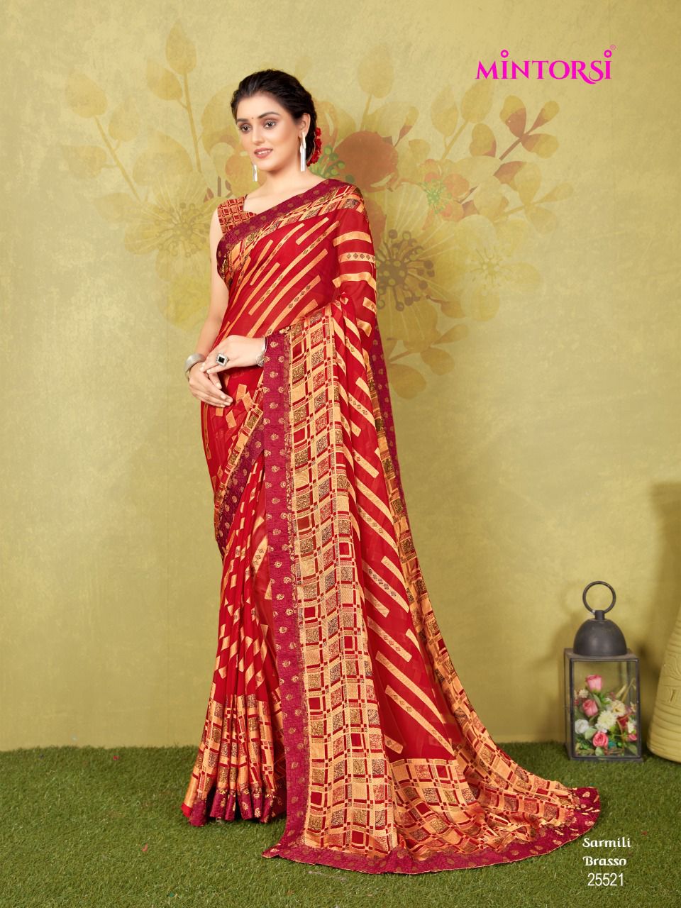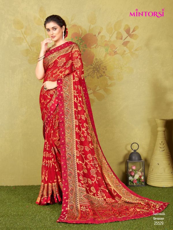 Mintorsi Presents Sarmili Brasso 25521-25532 Series Jhilmil Brasso Print With Exclusive Lace Saree Collection#1573