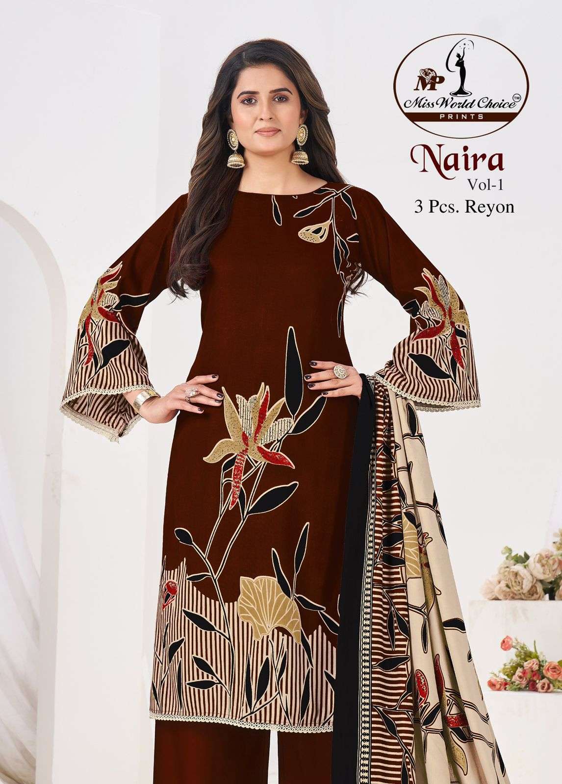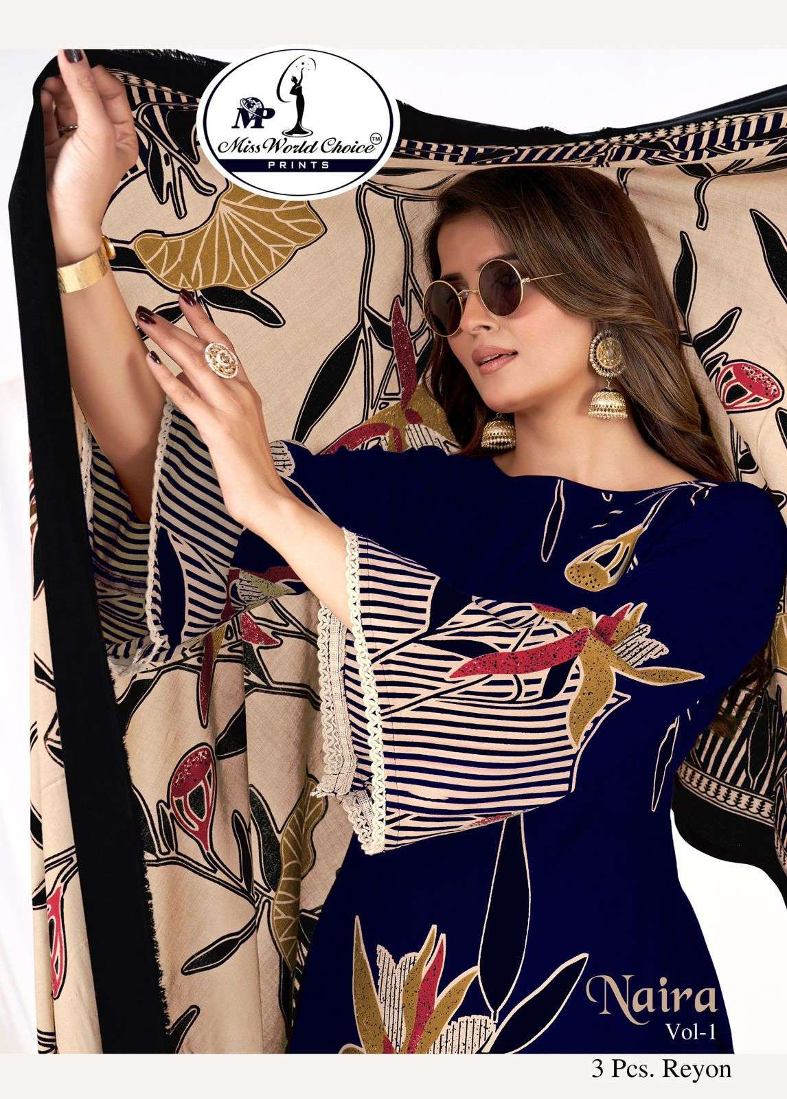 | Catalogue: | MISS WORLD CHOICE NAIRA VOL 1 Beautiful Rayon Printed Pakistani Suit |