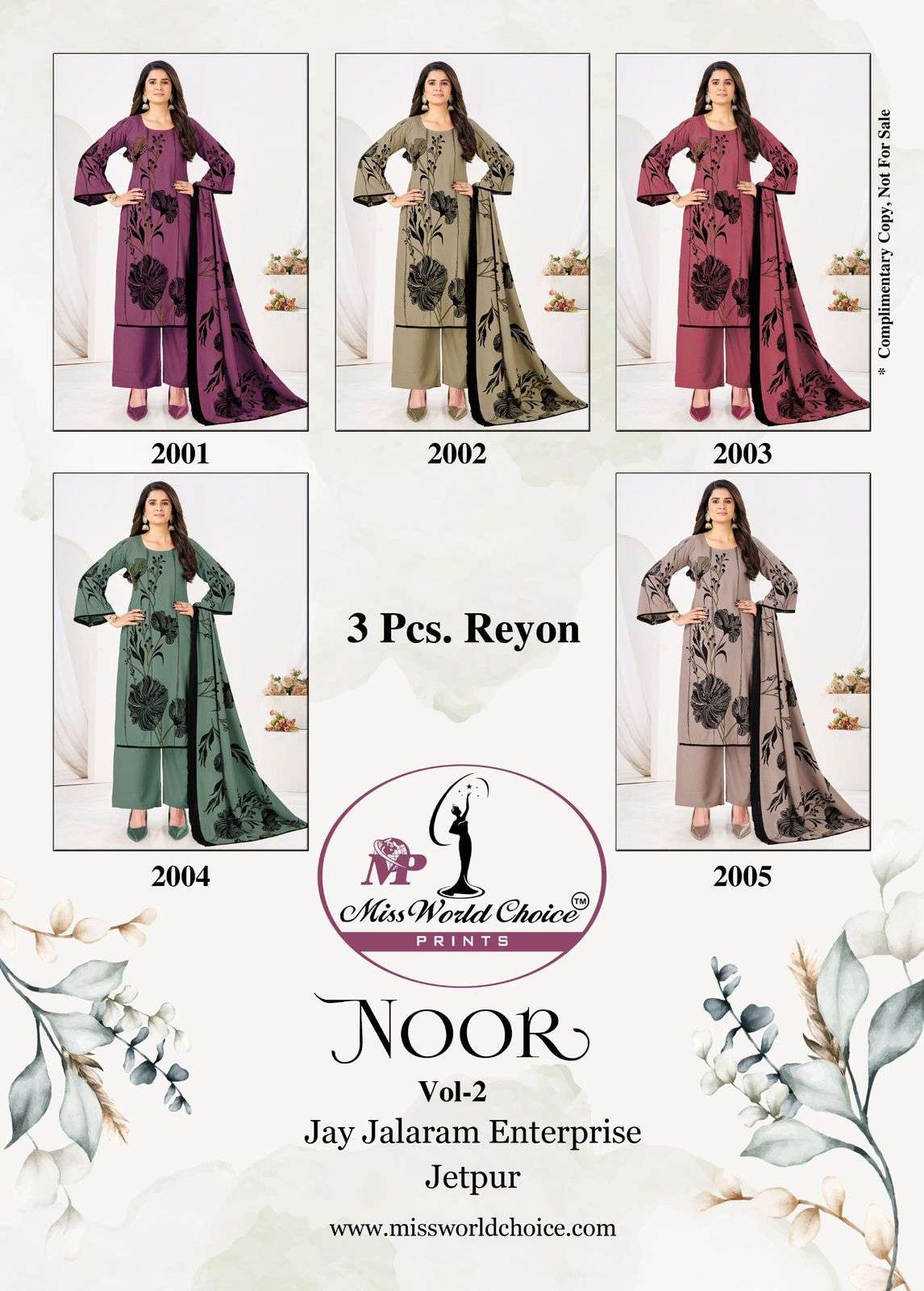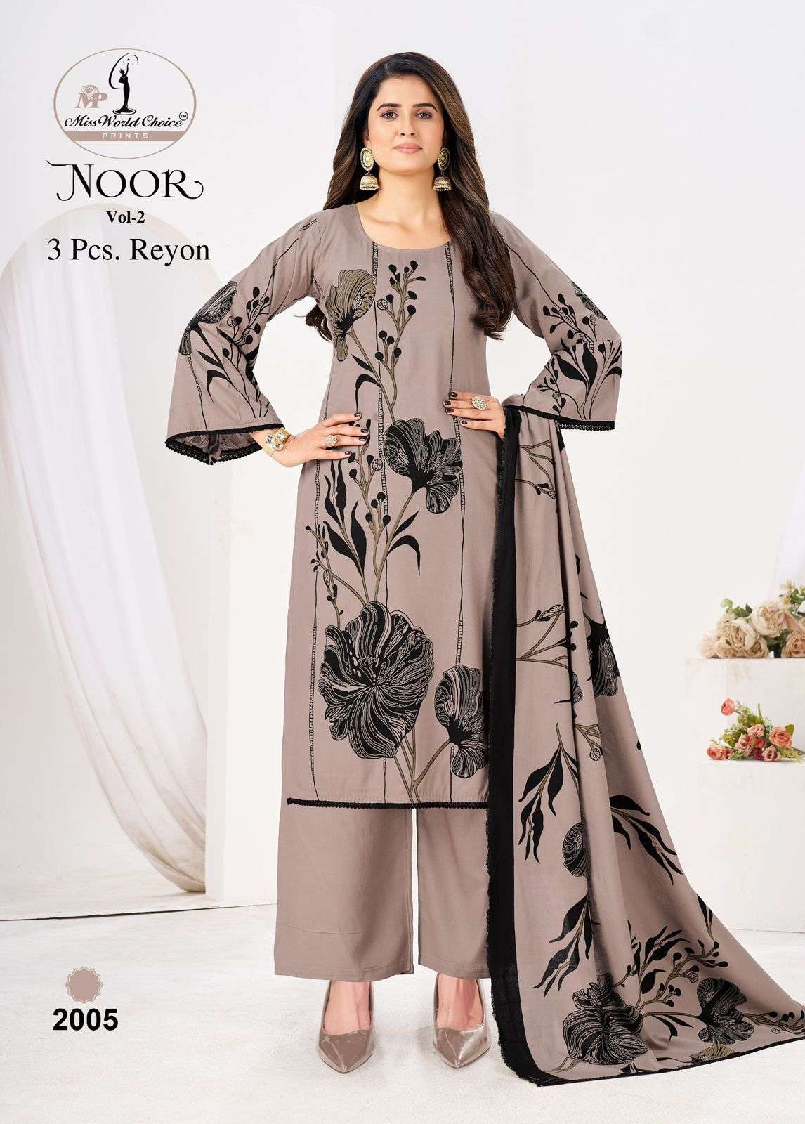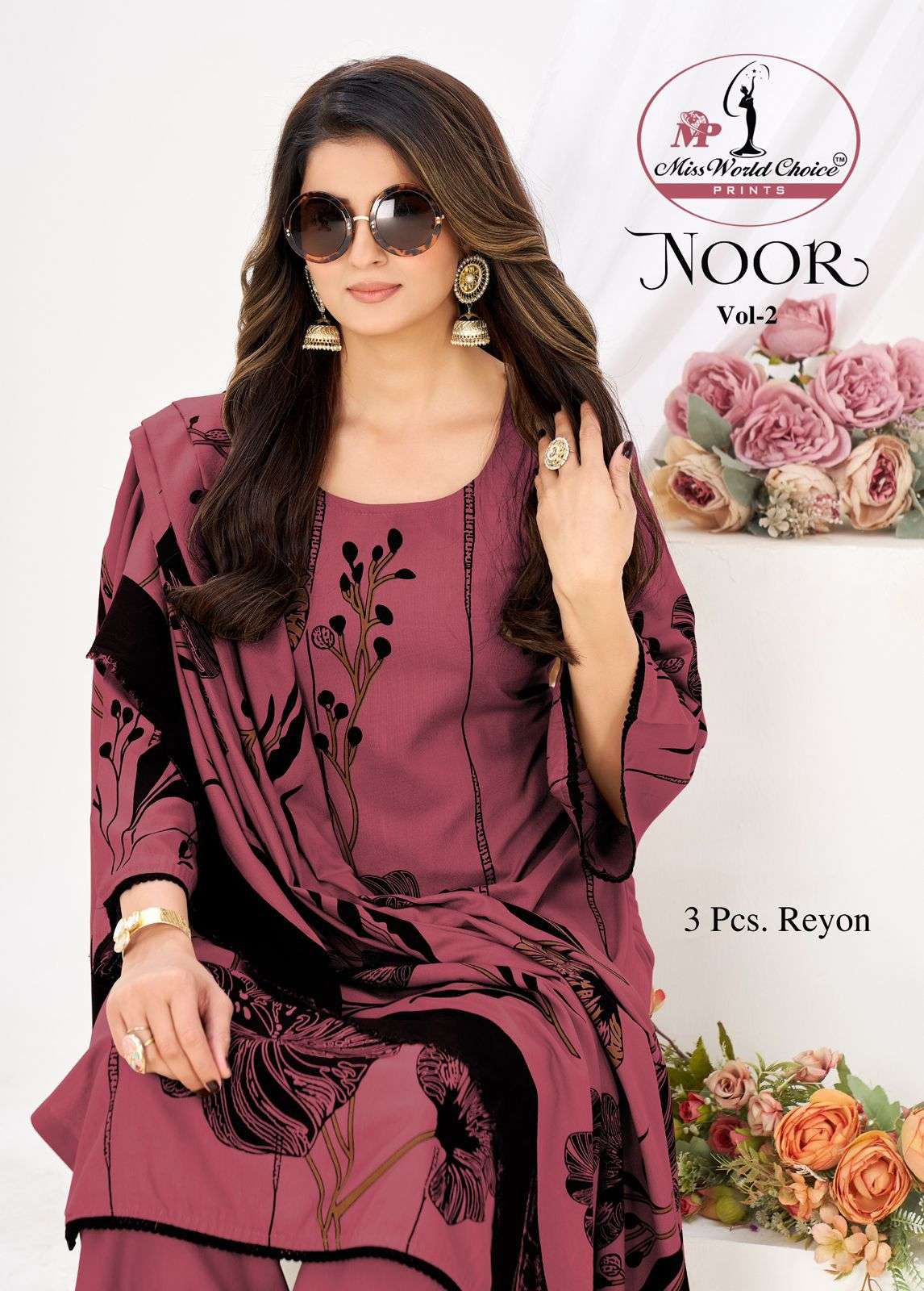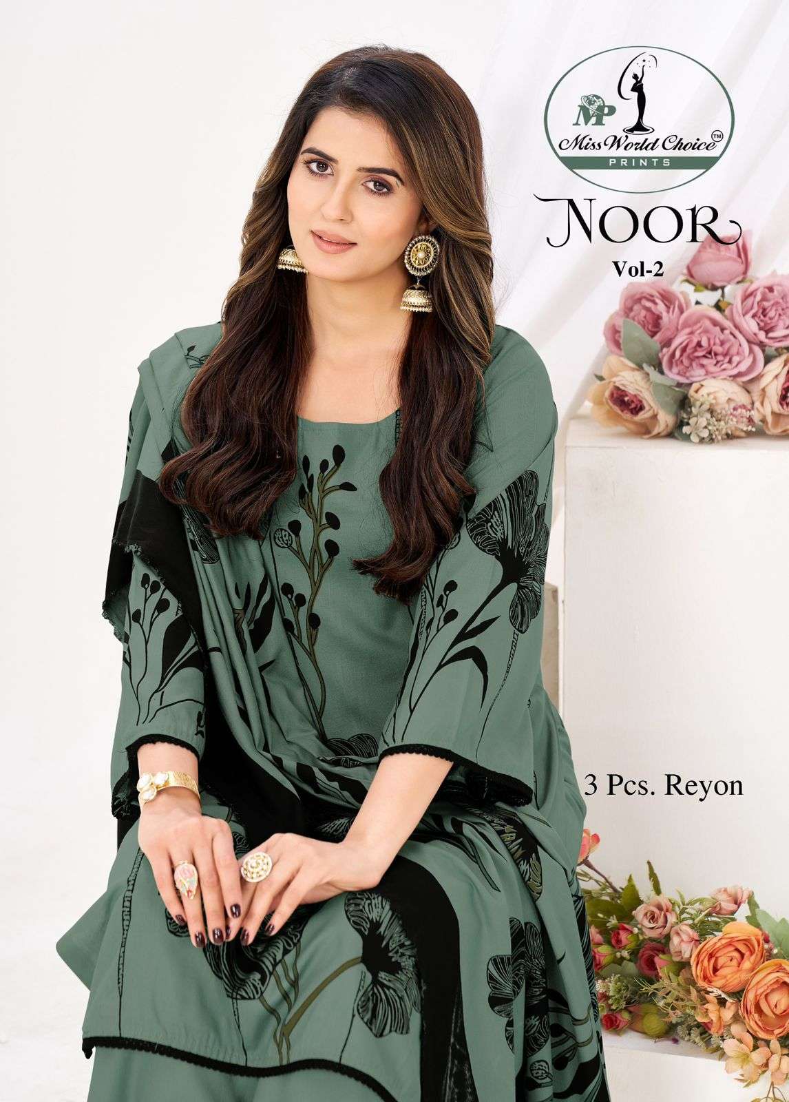 | Catalogue: | MISS WORLD CHOICE NOOR VOL 2 PREMIUM QUALITY RAYON PRINTED SUIT |