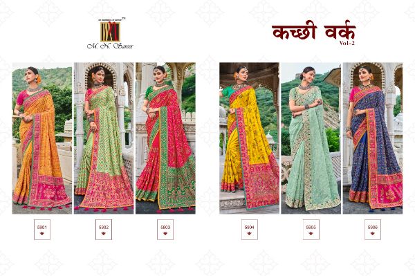 Mn Presents Kachchi Work Vol-2 5901-5906 Series Banarsi Silk With Mirror Work Saree Collection#1464