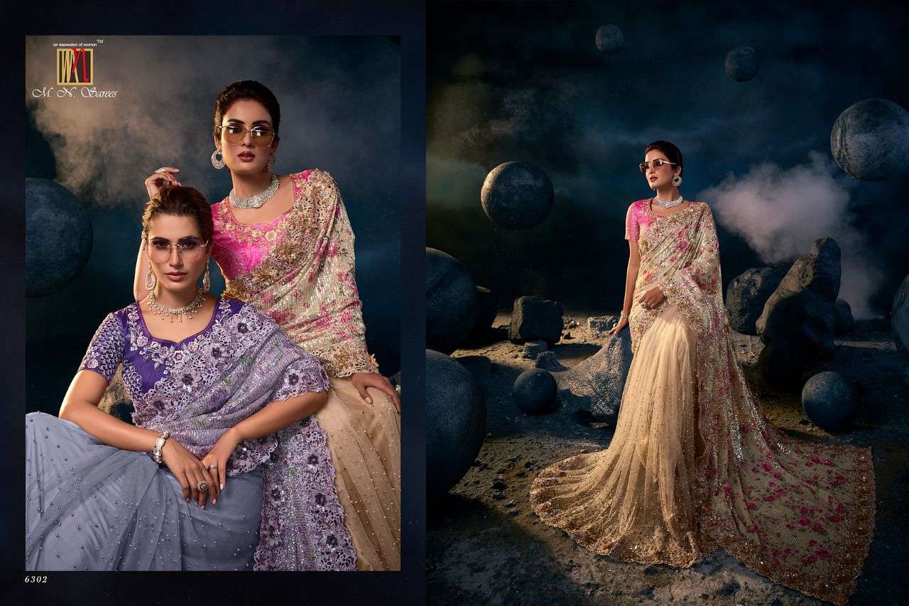 MN PRESENTS SWAROVSKI VOL-4 6302 CREAM DESIGNER WORK SAREES WEDDING WEAR COLLECTION AT WHOLESALE PRICE N829