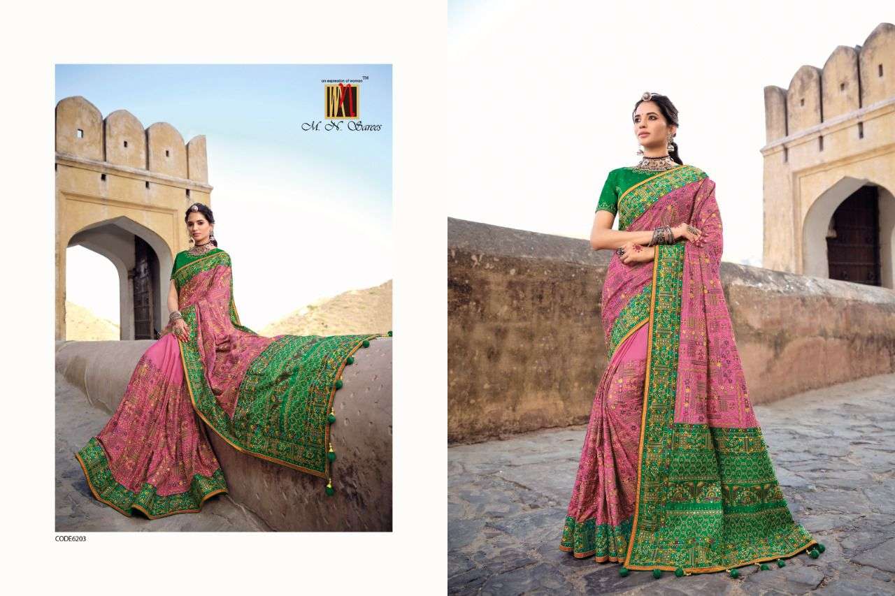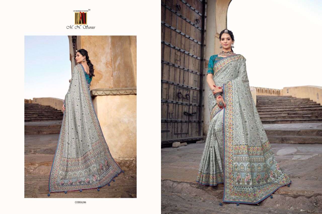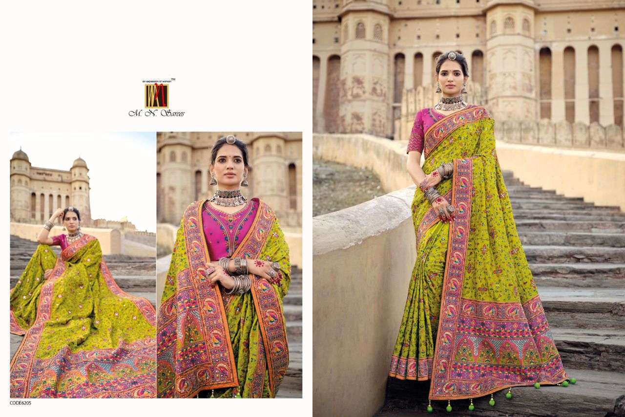 MN SAREES PRESENTS KACHHI WORK VOL - 3 6201 - 6206 SERIES INDIAN WOMEN DESIGNER BANARSI SILK SAREE SARI PARTY ROYAL WEDDING WEAR COLLECTION 2450