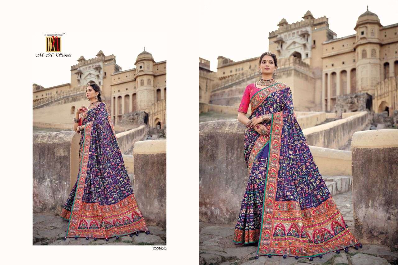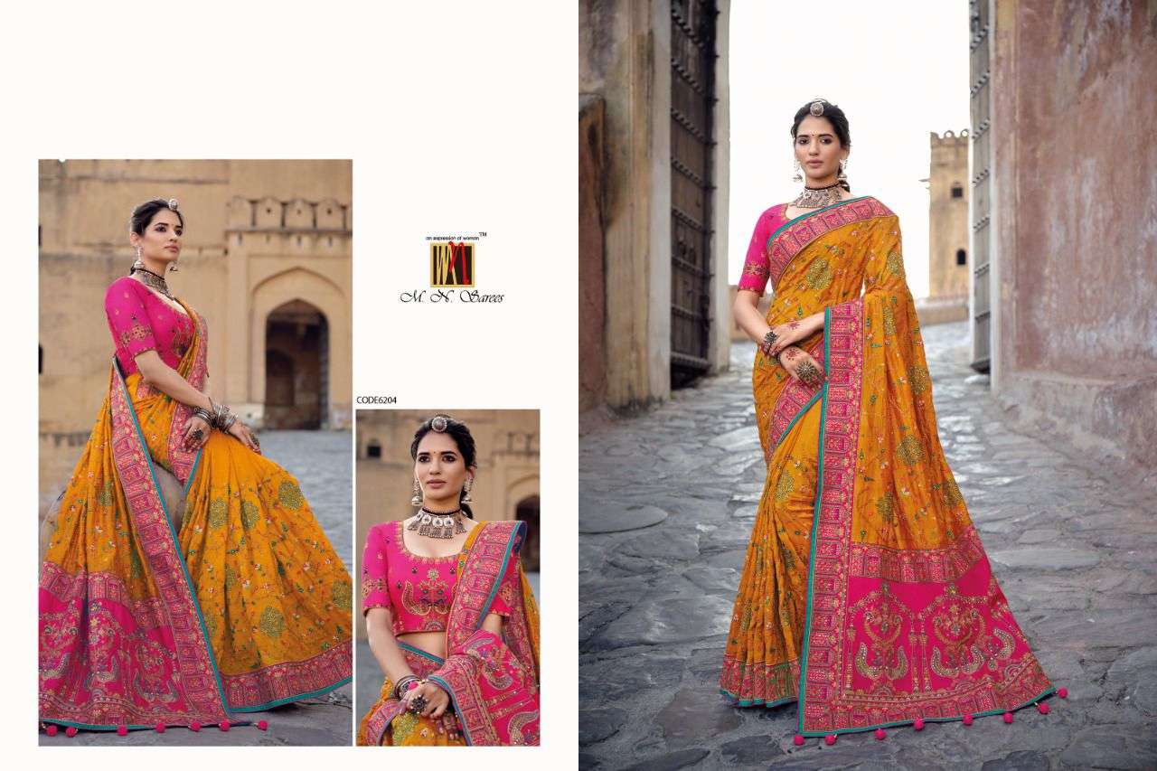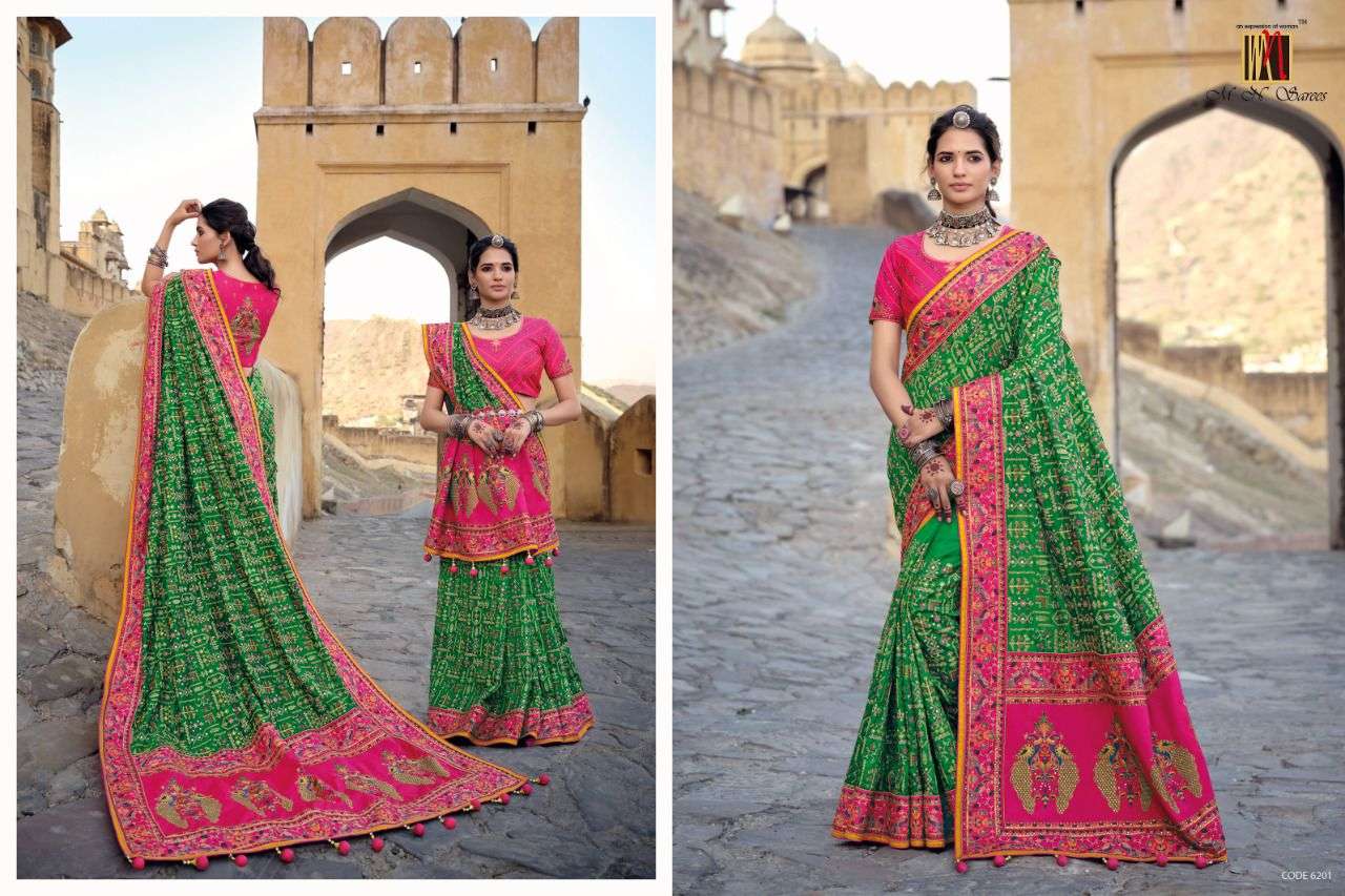 MN SAREES PRESENTS KACHHI WORK VOL - 3 6201 - 6206 SERIES INDIAN WOMEN DESIGNER BANARSI SILK SAREE SARI PARTY ROYAL WEDDING WEAR COLLECTION 2450