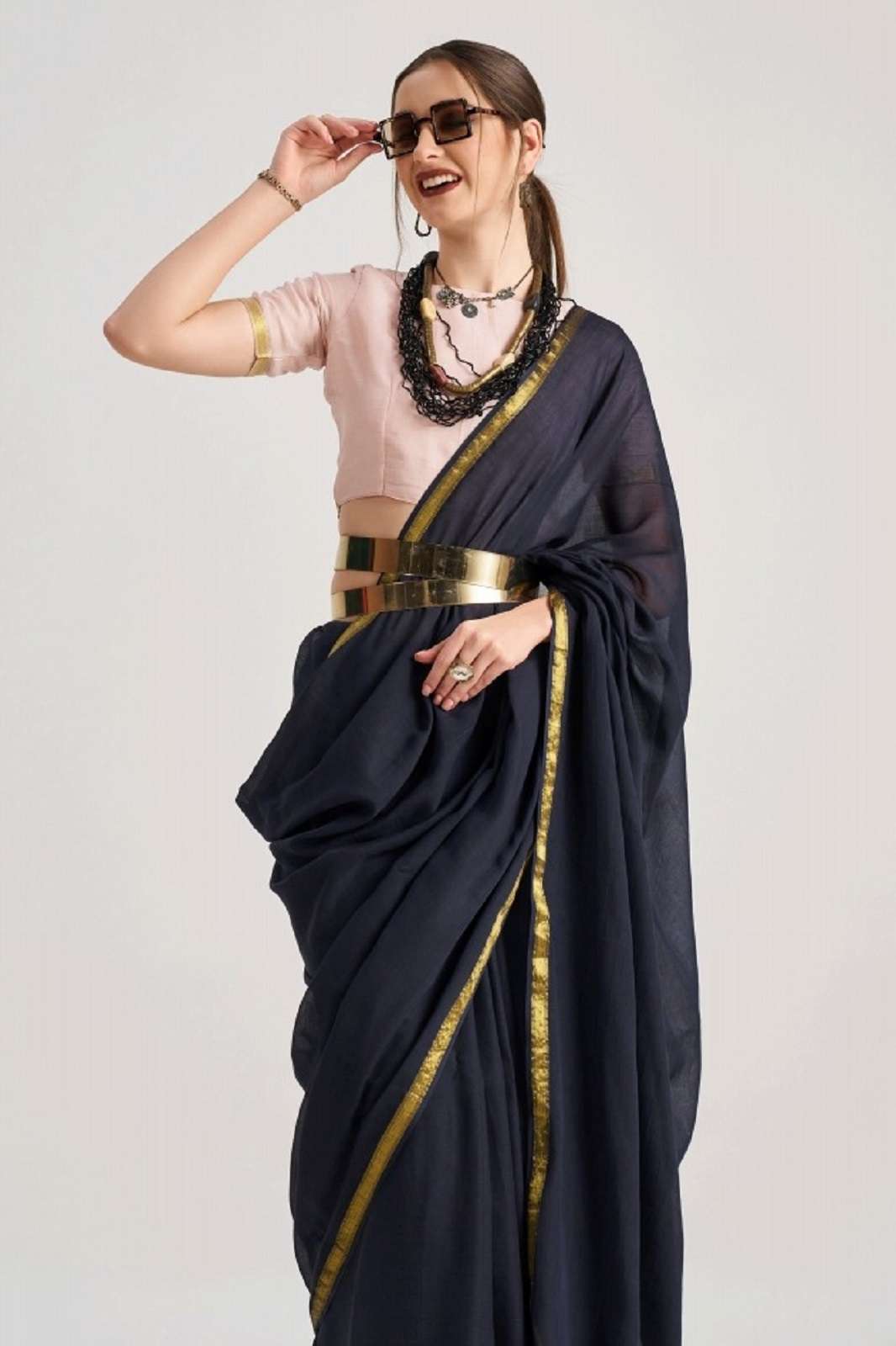 SAREE - Viscose Mul with Contrast Designer Blouse ||