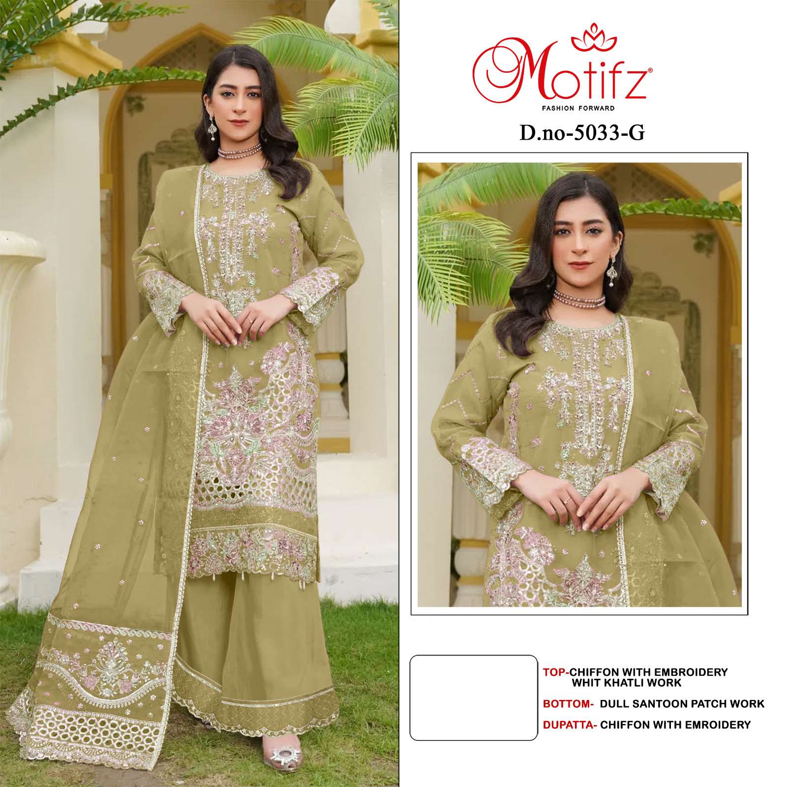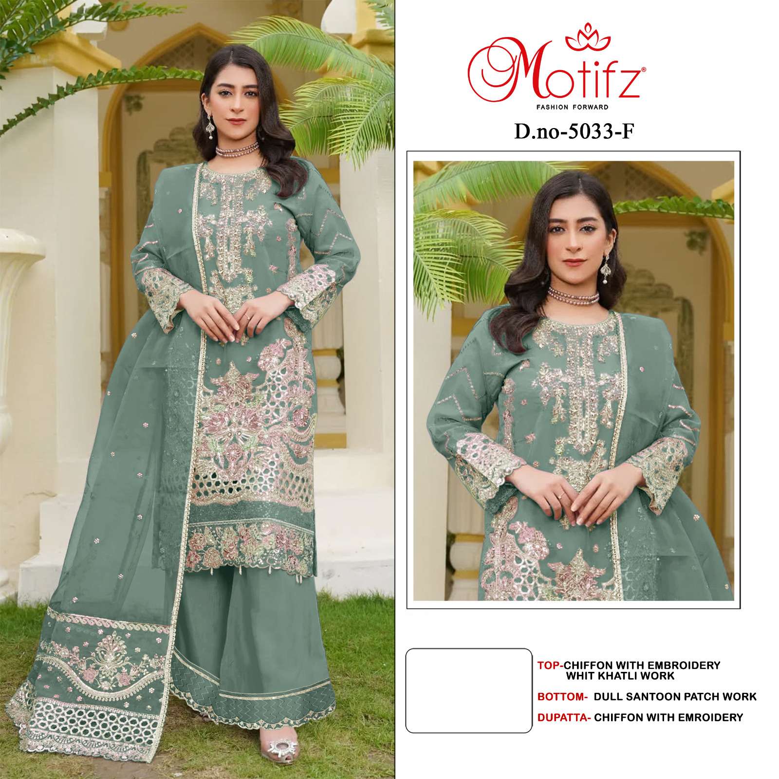 | Catalogue: | Motifz 5033 Chiffon Pakistani Suit with Embroidery & Khatli Work |