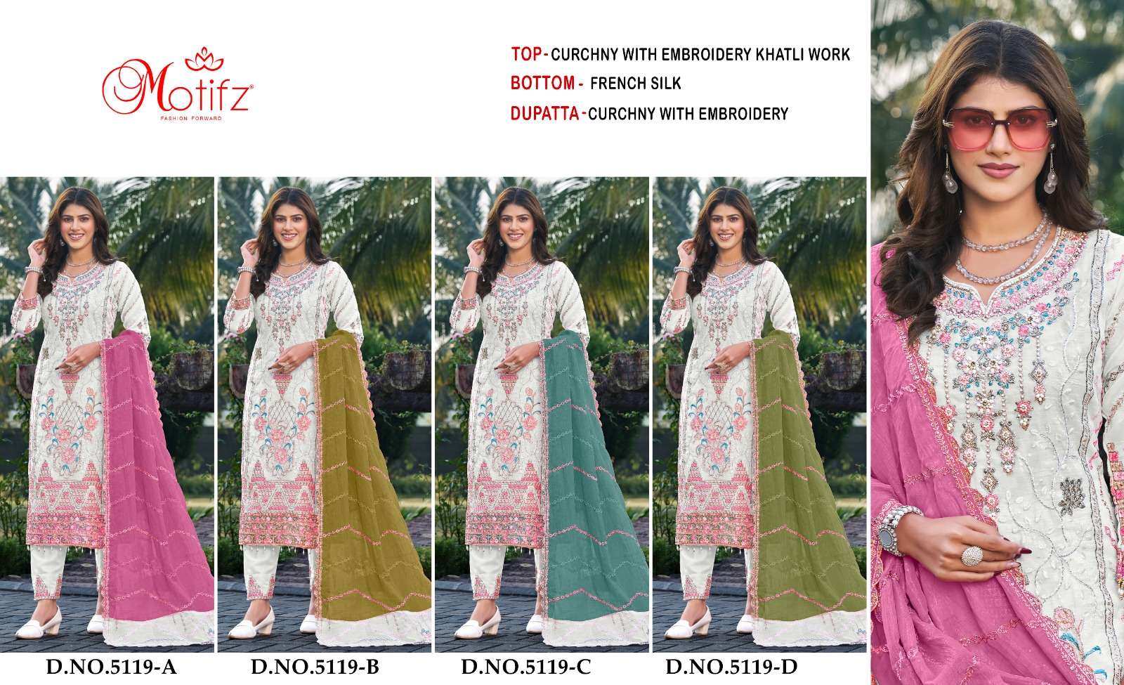| Catalogue: | Motifz 5119 Crunchy Fabric Embroidery & Khatli Work Pakistani Suit |