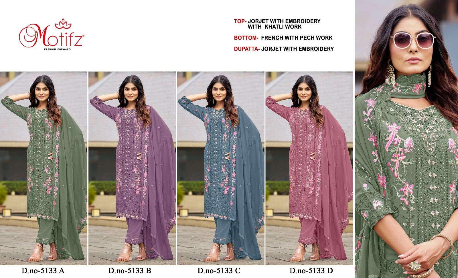 | Catalogue: | Motifz 5133 Georgette Pakistani Suit with Embroidery & Khatli Work |