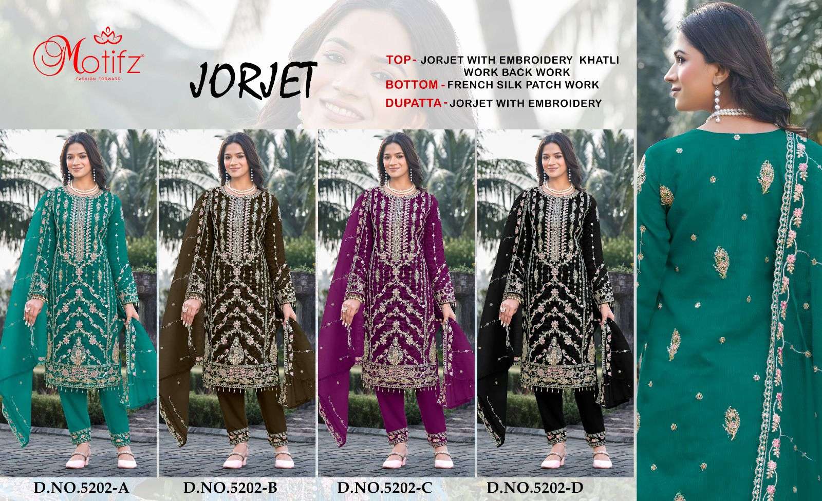 | Catalogue: | Motifz 5202 Georgette Pakistani Suit with Embroidery & Khatli Work |