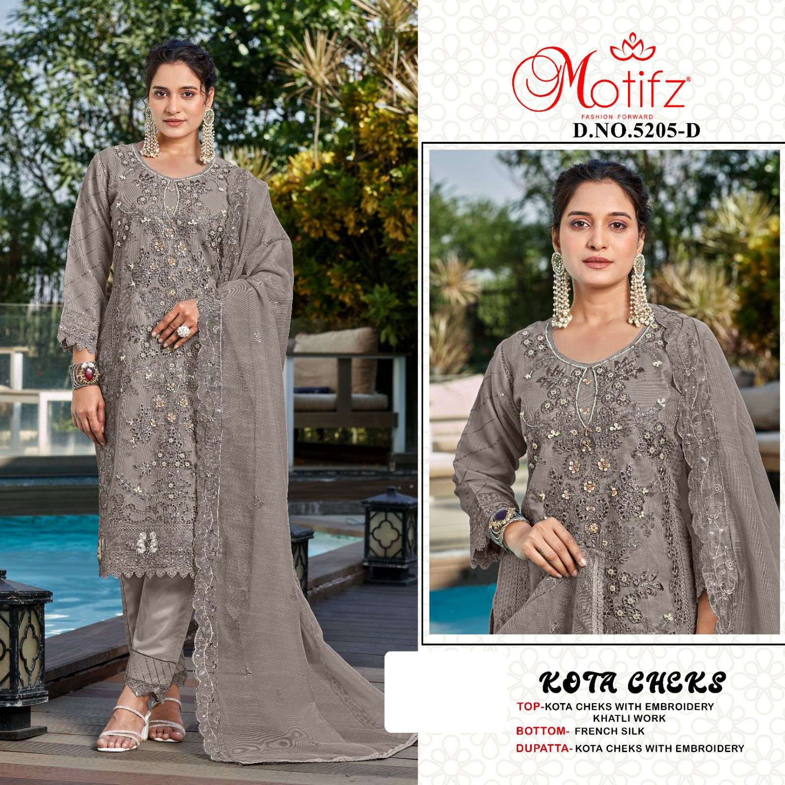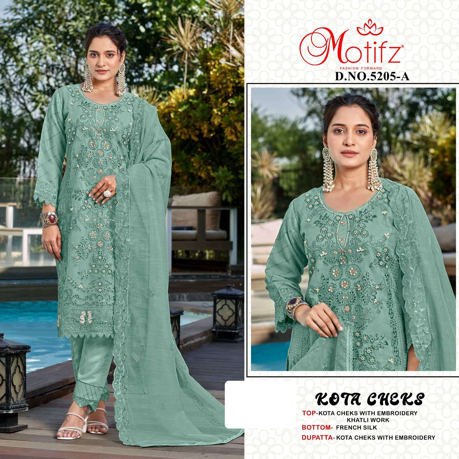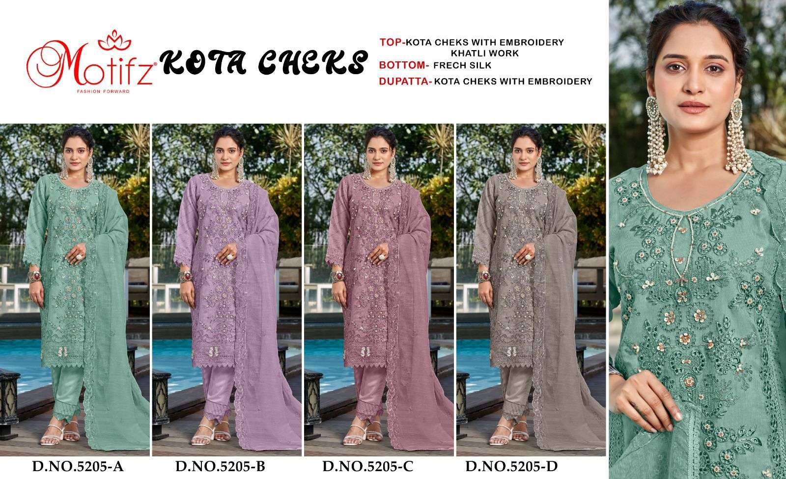 | Catalogue: | Motifz 5205 Kota Cheks Pakistani Suit with Embroidery & Khatli Work |