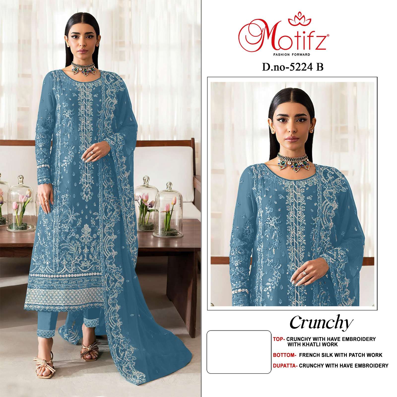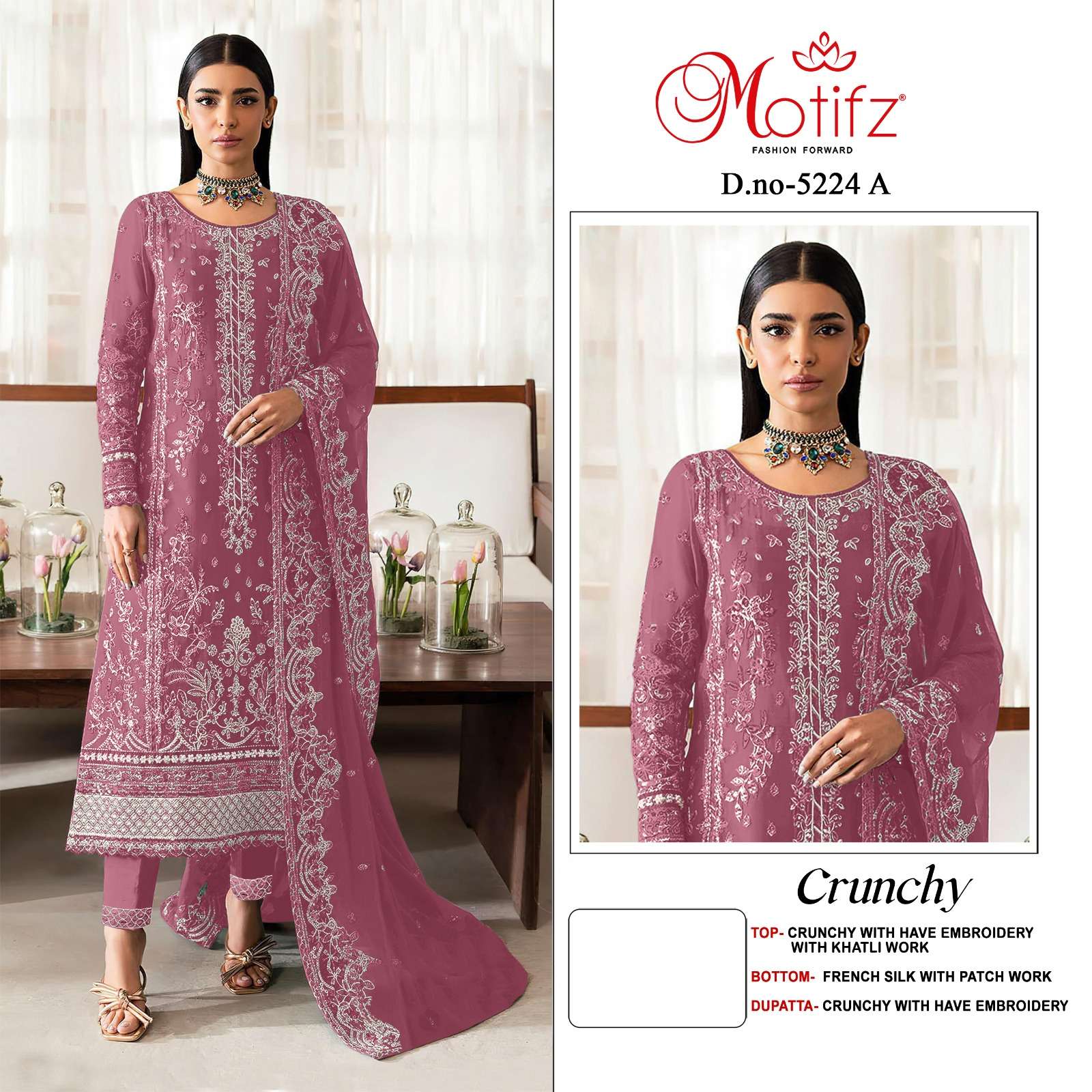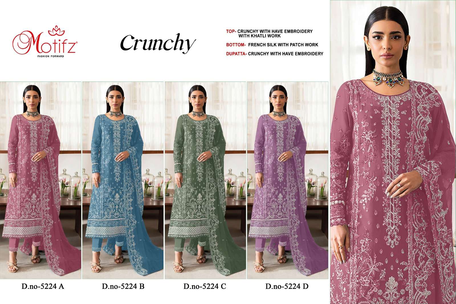 | Catalogue: | Motifz 5224 Crunchy Fabric Embroidery & Khatli Work Pakistani Suit |