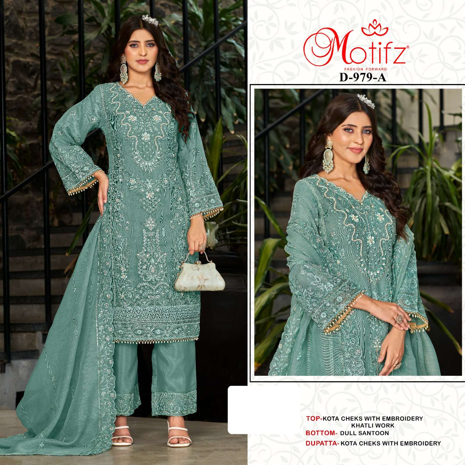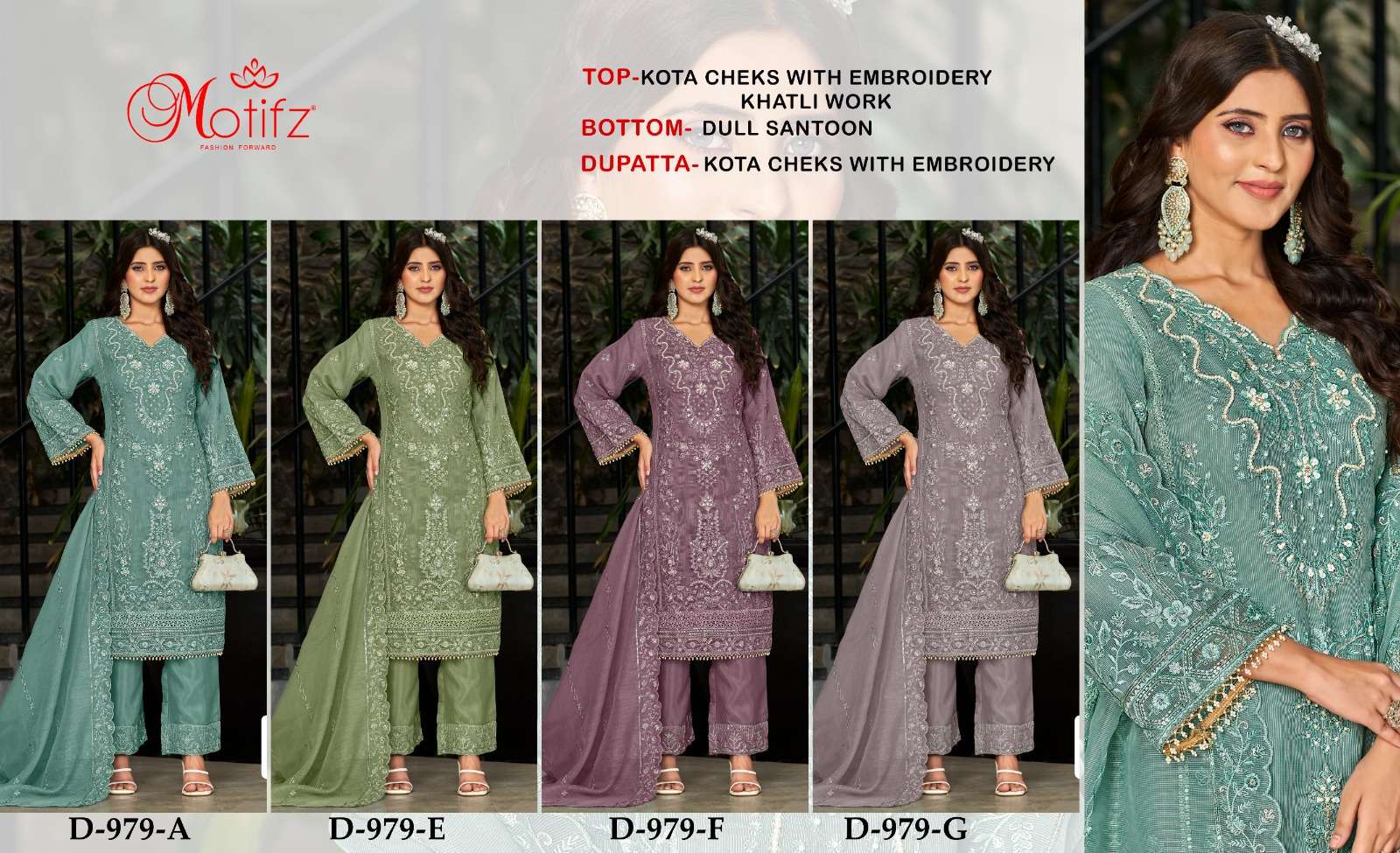 Catalogue: | Motifz 979 kota cheks Pakistani Suit with Embroidery khatli work |