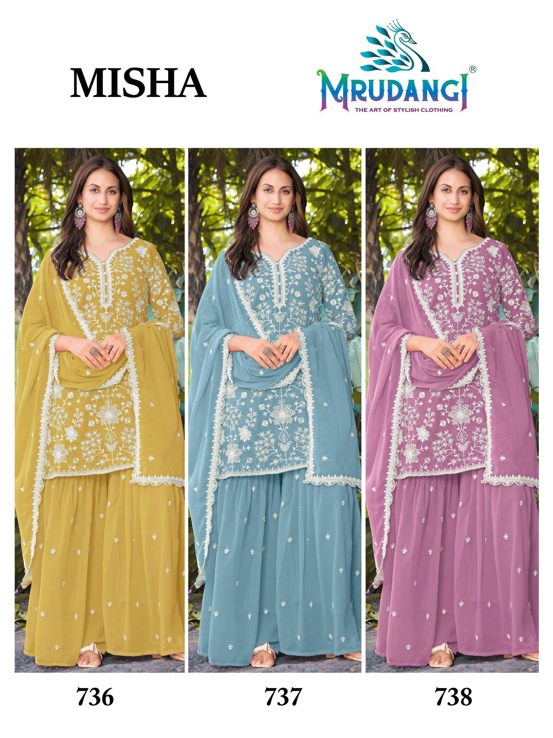 | Catalogue: | MRUDANGI MISHA 736 TO 738 PREMIUM REAL GEORGETTE SUIT |