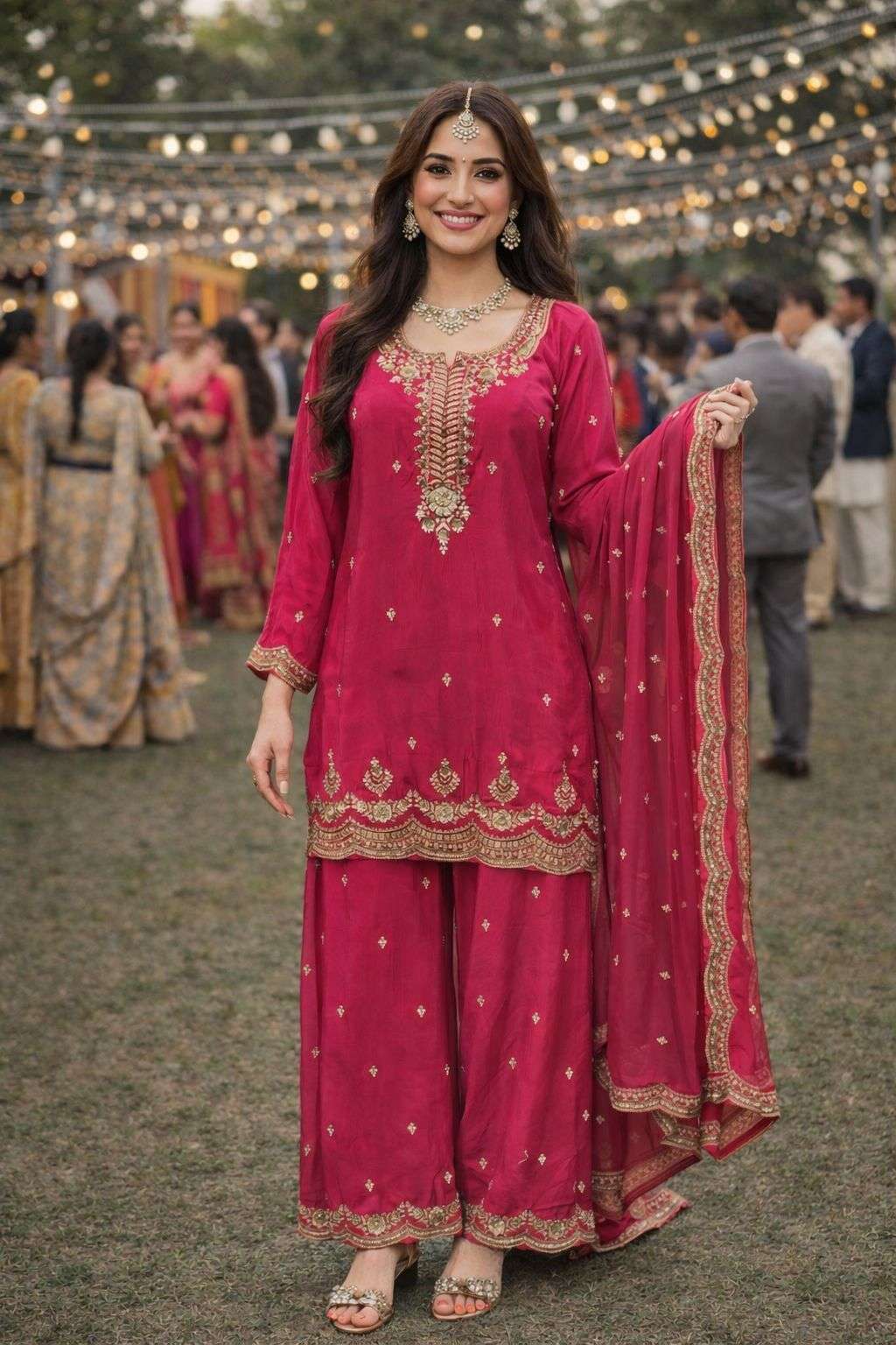 FABRIC - REAL PREMIUM VISCOUS( HEAVY EMBROIDERED WORK TOP WITH PLAZZO AND DUPATTA )