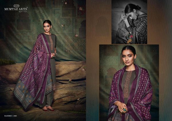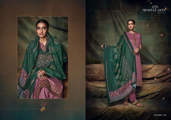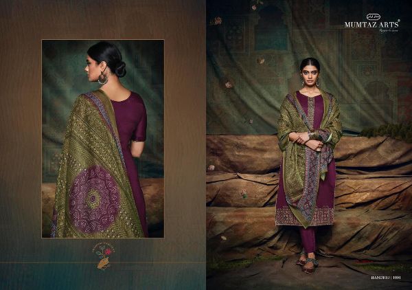 Mumtaz Arts Presents Rangon Ki Dunya 1001-1010 Series Pure Jam Satin Embroidery Work Salwar Suit Collection