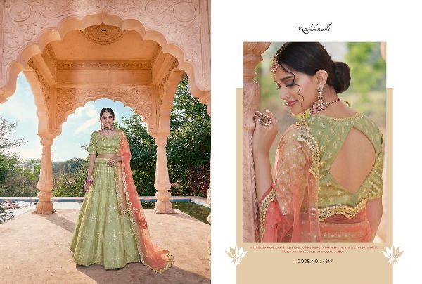 Nakkashi Presents Kasak 4217 - 4228 Series Beautiful Handloom Silk With Mirror Work Party Wear Lehenga Collection