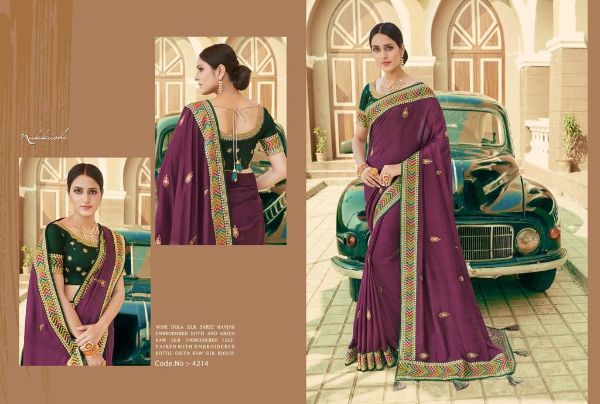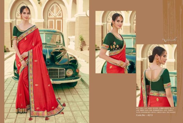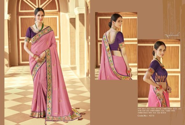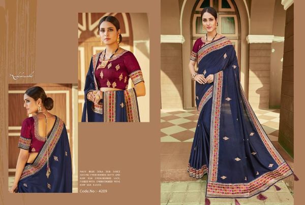 Nakkashi Presents Kimaya 4208 - 4216 Series Premium Dola Silk Emblished With Embroidery Butta Saree Collection