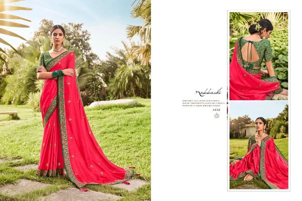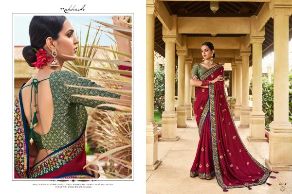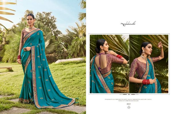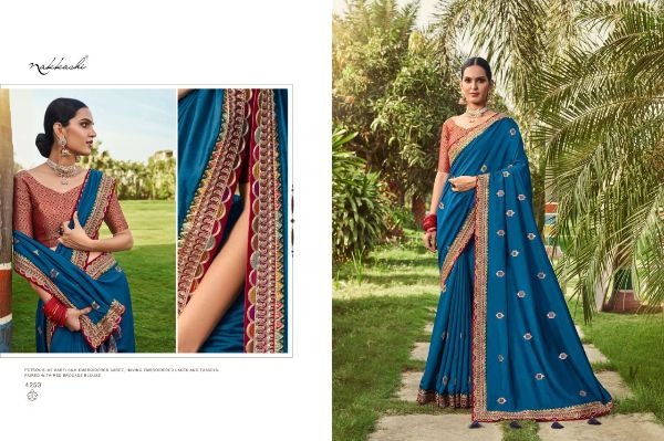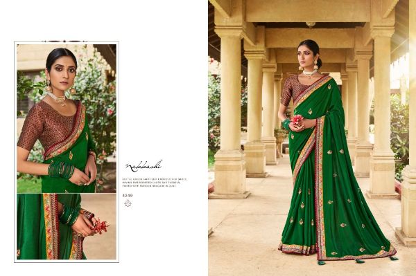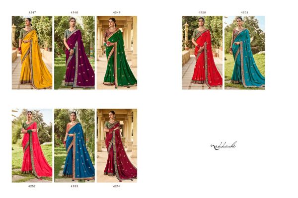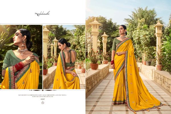 Nakkashi Presents Sanjh 4247-4254 Series Silk With Embroidery Work And Lace Fancy Saree Collection