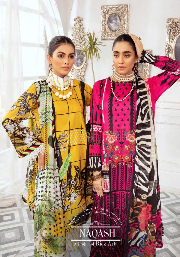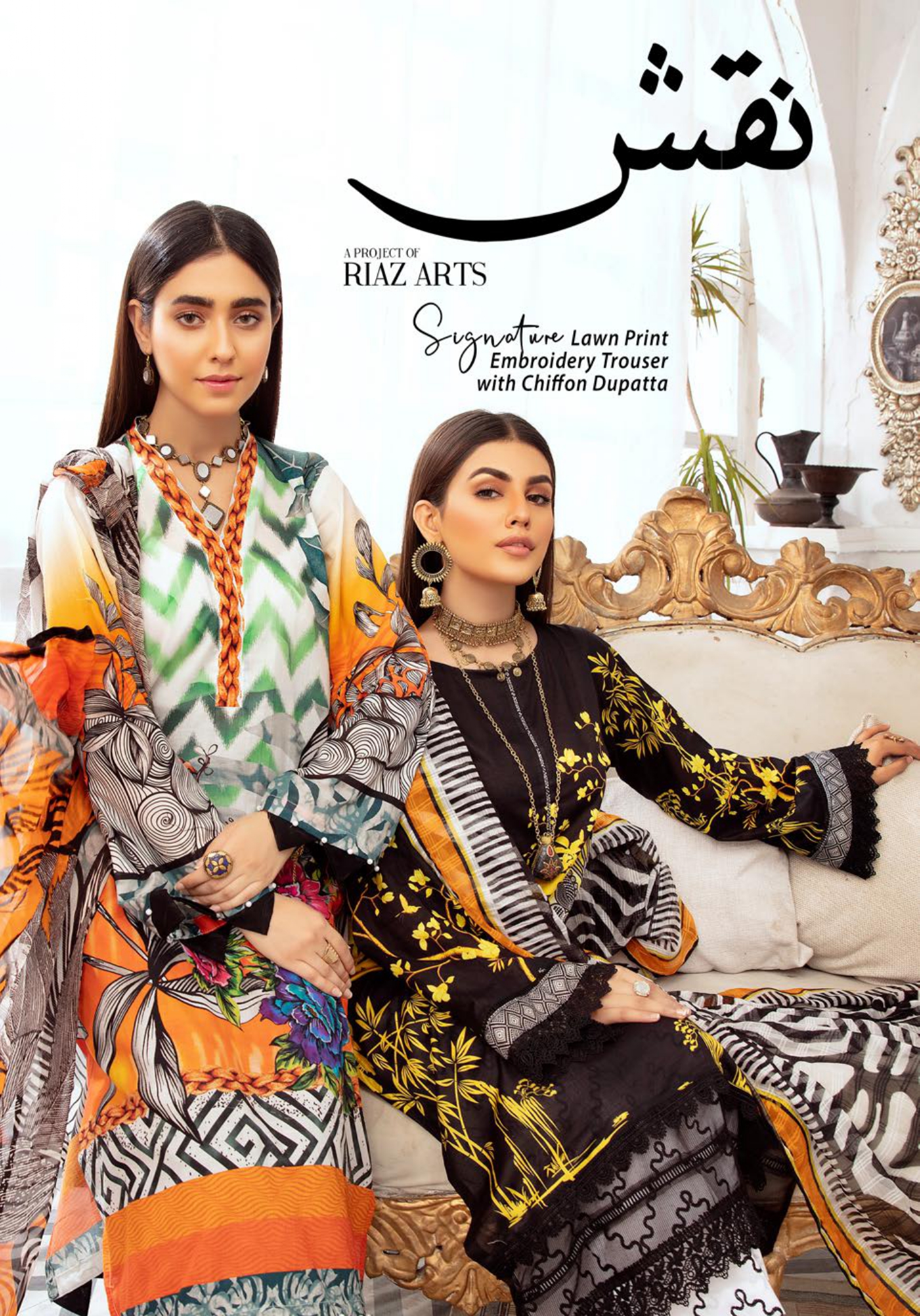 Naqsh By Riaz Arts 001,002,003,004,005,006,007,008,009 Series Embroidered Lawn Collection 100% Original Pakistani Collection