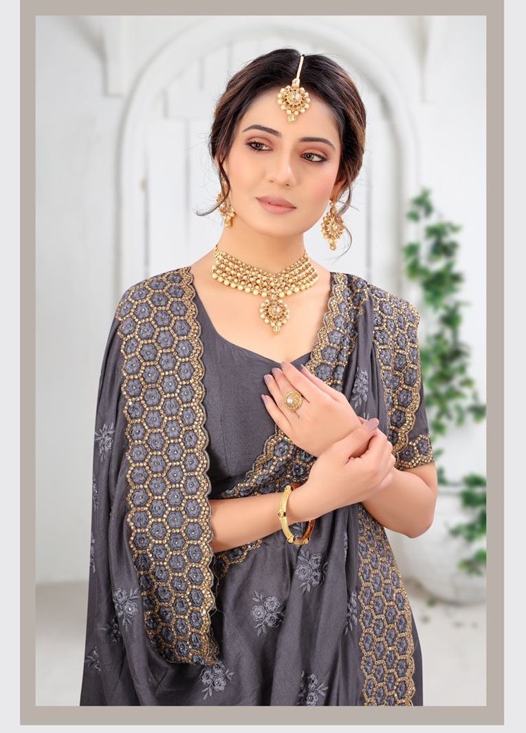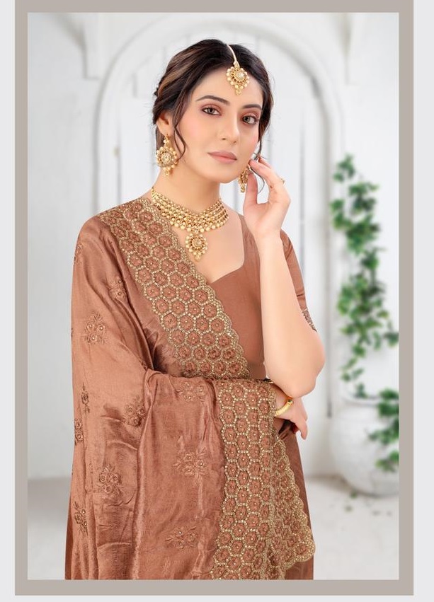 Latest Traditional Wear Saree Collection. Exclusive with Embroidery Work gives a Fashionable Look, High sensed style and luxury makes you ready for envious glazes and very rich & Royal in the Party, Function, Event etc.