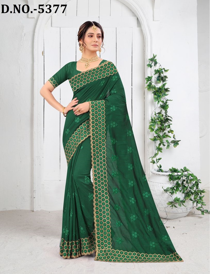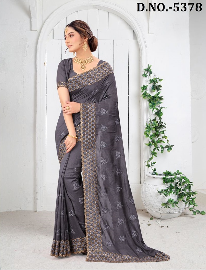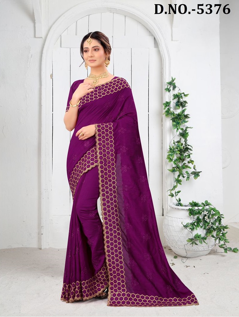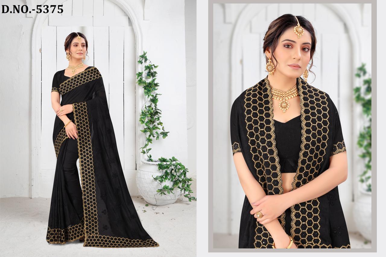 Nari Fashion 5371 To 5378 Heavy Resham Embroidery Work With Stone Boarder Silk Saree