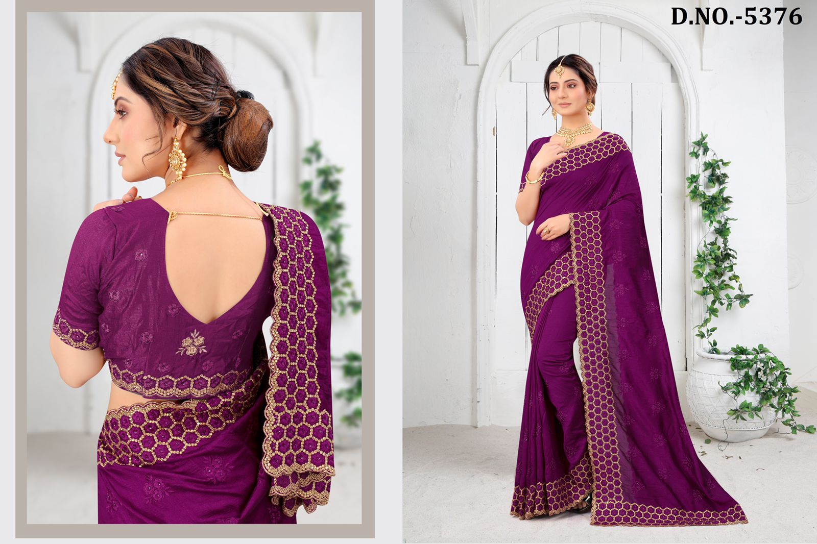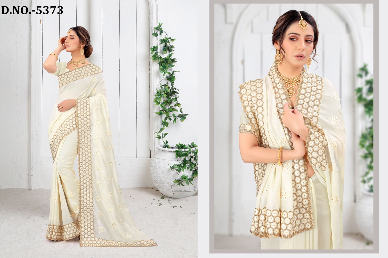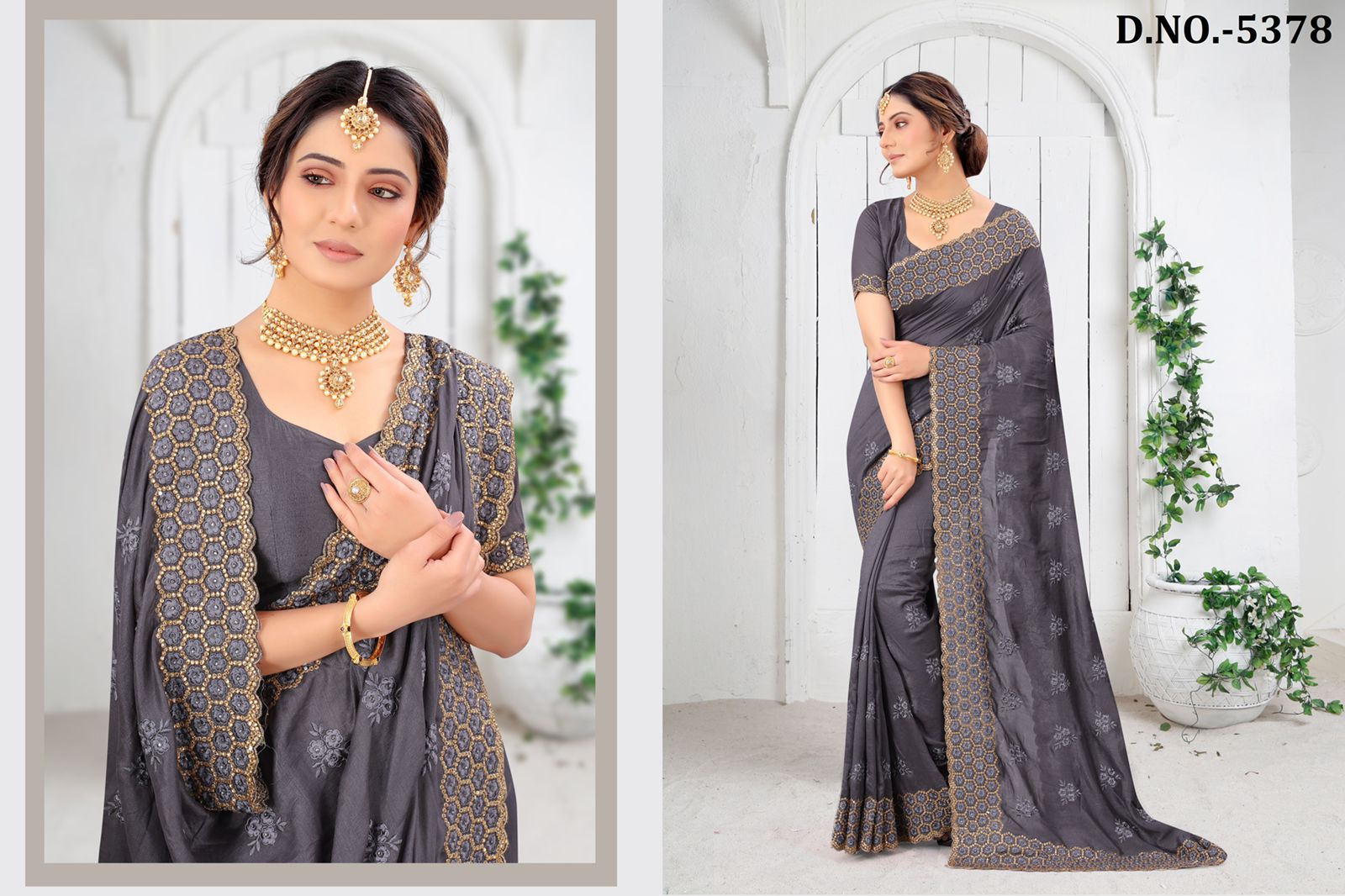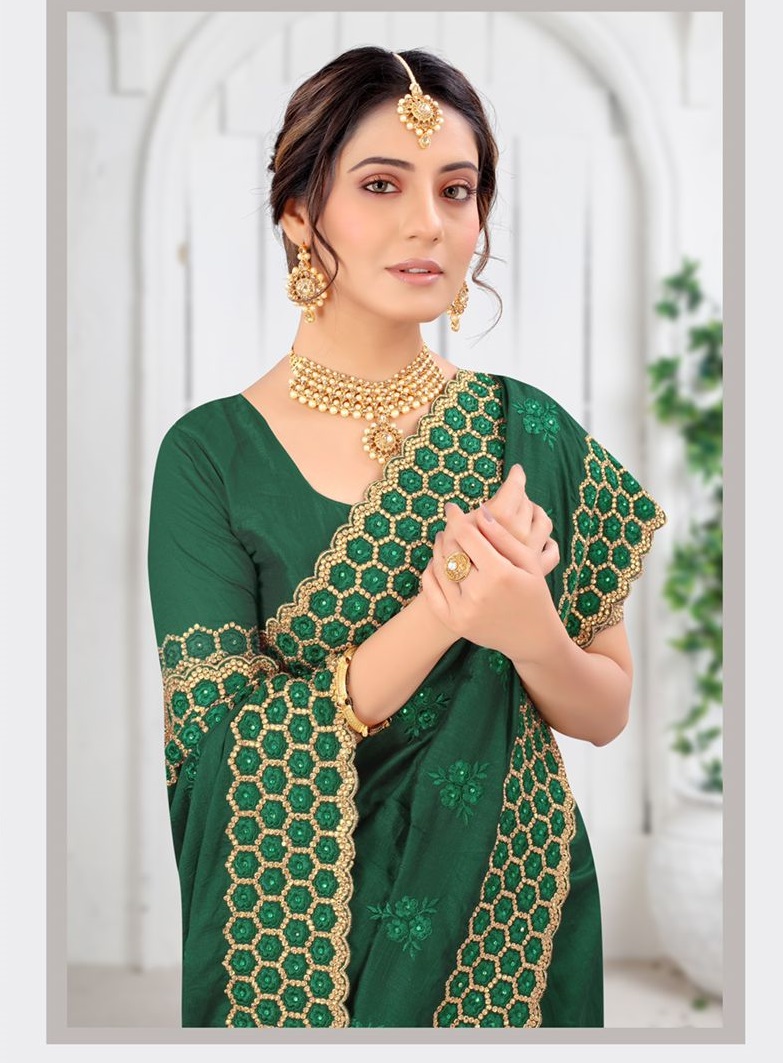 Nari Fashion 5371 To 5378 Heavy Resham Embroidery Work With Stone Boarder Silk Saree