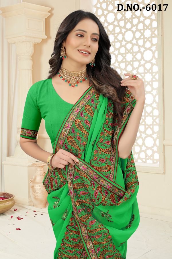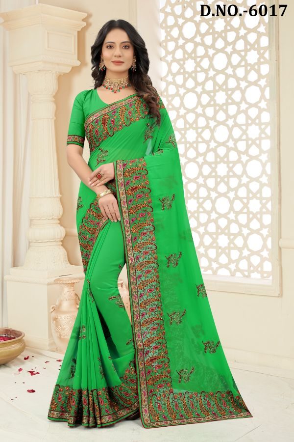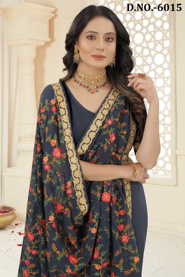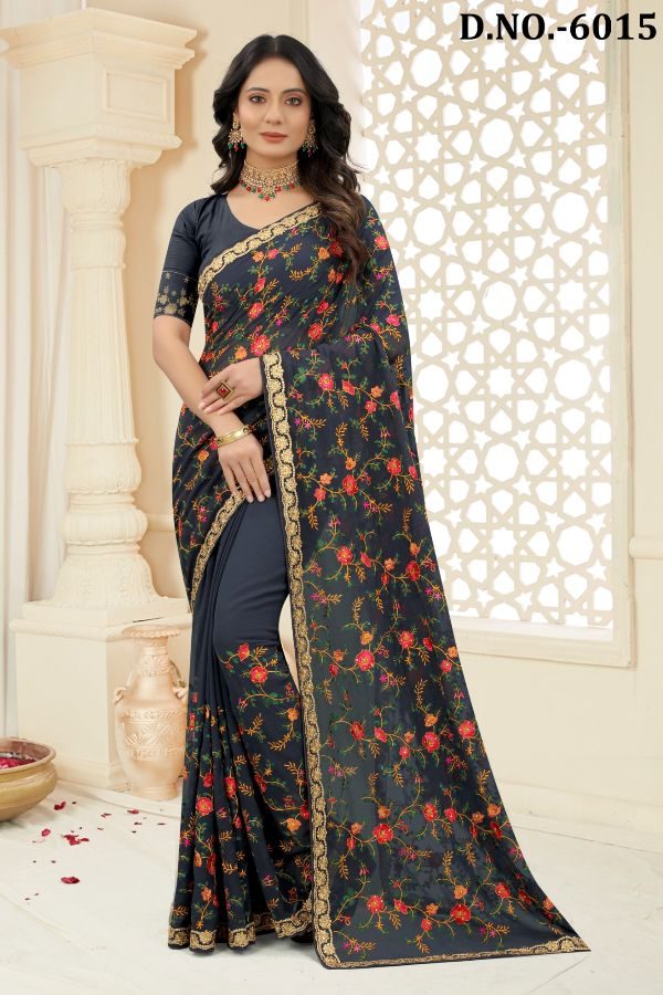 Latest Traditional Wear Saree Collection. Exclusive with Embroidery Work gives a Fashionable Look, High sensed style and luxury makes you ready for envious glazes and very rich & Royal in the Party, Function, Event etc.
