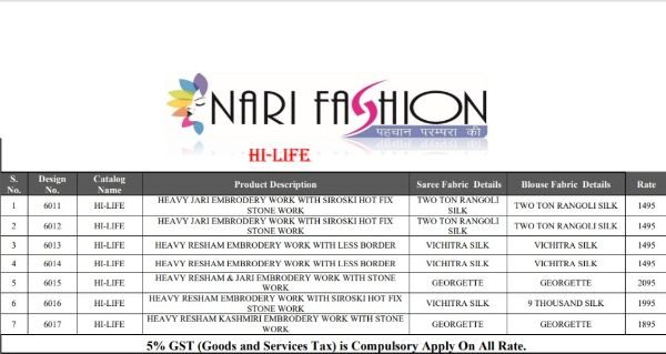 Nari Fashion Present Hi-life 6011-6017 Series Fancy Designer Sarees Collection At Wholesale Price