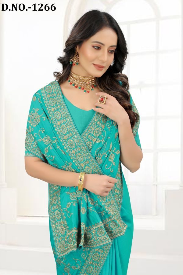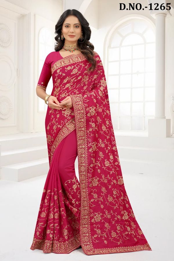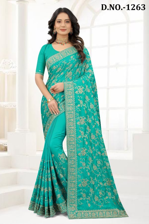 Latest Traditional Wear Saree Collection. Exclusive with Embroidery Work gives a Fashionable Look, High sensed style and luxury makes you ready for envious glazes and very rich & Royal in the Party, Function, Event etc.