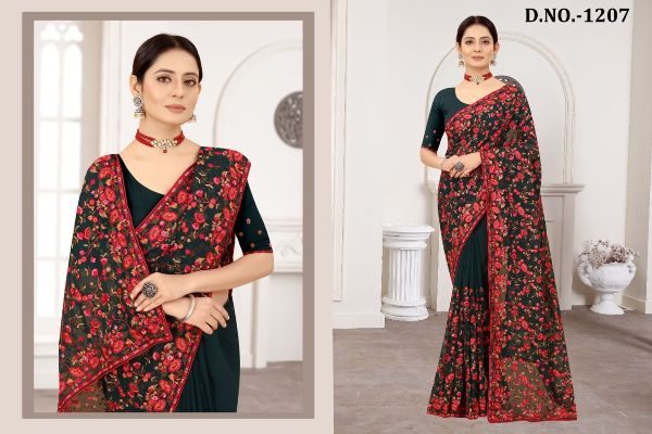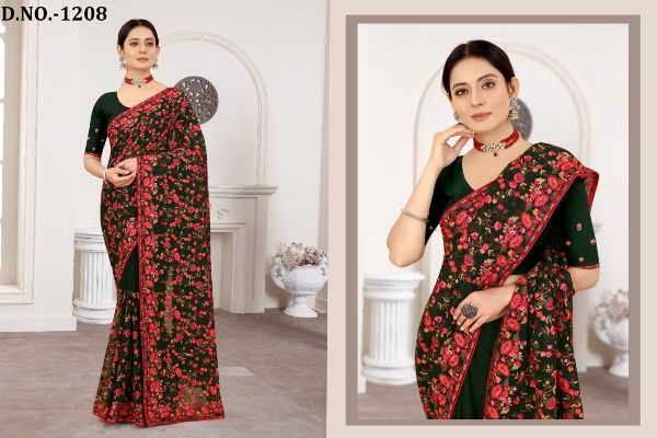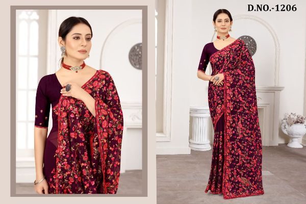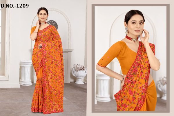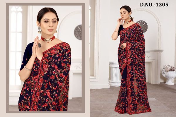 Nari Fashion Presents Kashmir Ki Kali 1201-1209 Series Indian Women Designer Georgette Embroidery Work Saree Party Wear Blouse Sari At Wholesale Price