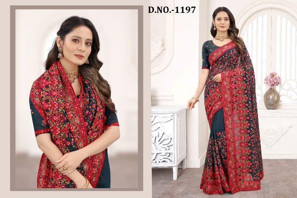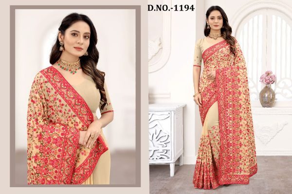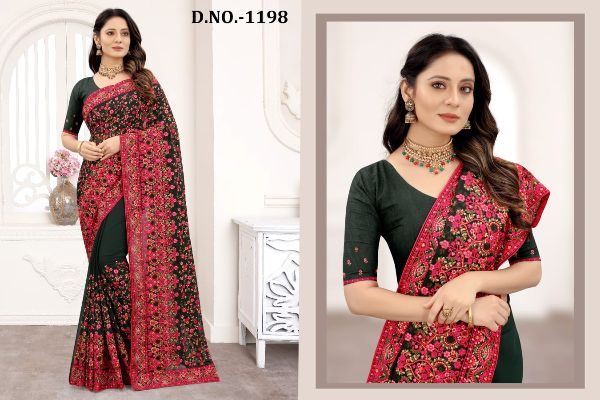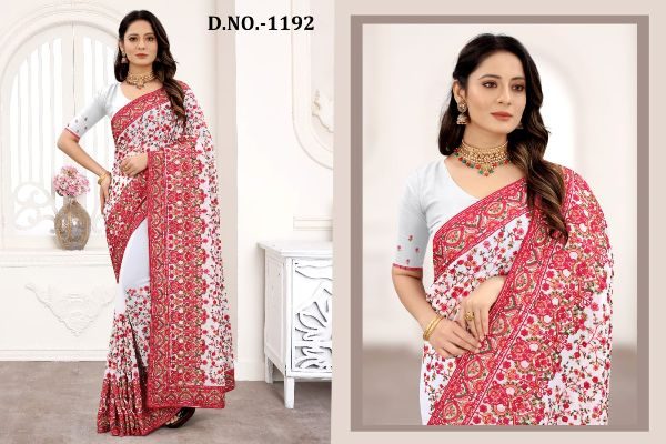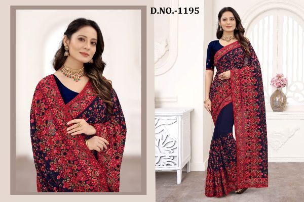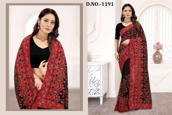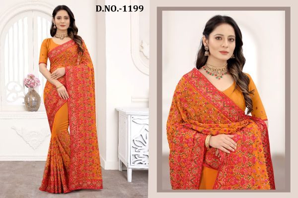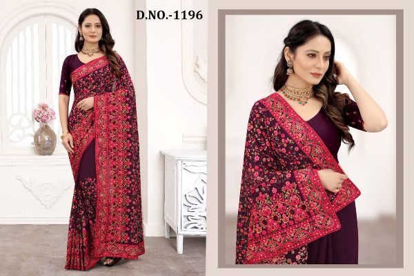 Nari Fashion Presents Kashmiri Glow 1191-1199 Series Indian Women Designer Georgette Embroidery Work Party Wear Saree Sari At Wholesale Price
