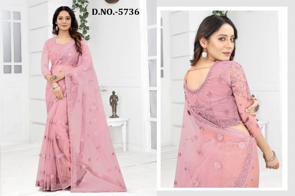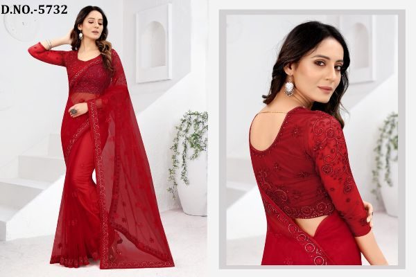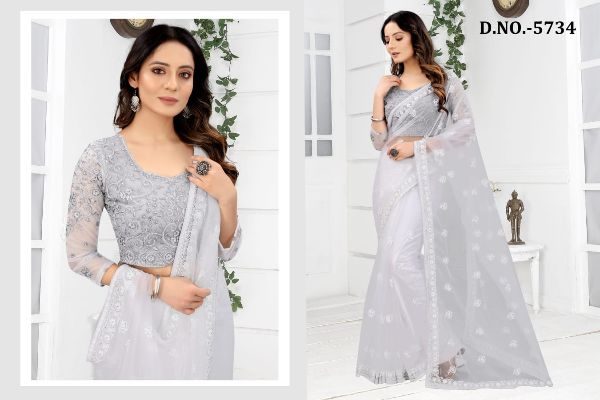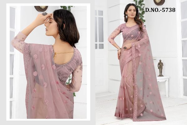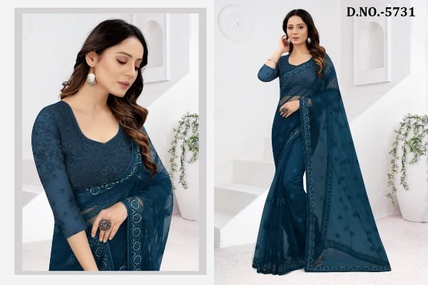 Nari Fashion Presents Princess 5731-5738 Series Indian Women Designer Embroidery Work Party Wear Net Saree Blouse Sari At Wholesale Price
