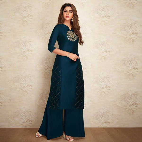 Latest Designer kurti plazzo Collection. Exclusive with Foil & Thread Embroidery Work gives a Fashionable Look, High sensed style and luxury makes you ready for envious glazes and very rich & Royal in the Party, Function, Event etc.