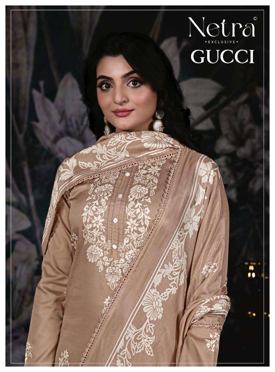 | Catalogue: | NETRA GUCCI LATEST DESIGNER PREMIUM COTTON SATIN SALWAR SUIT |