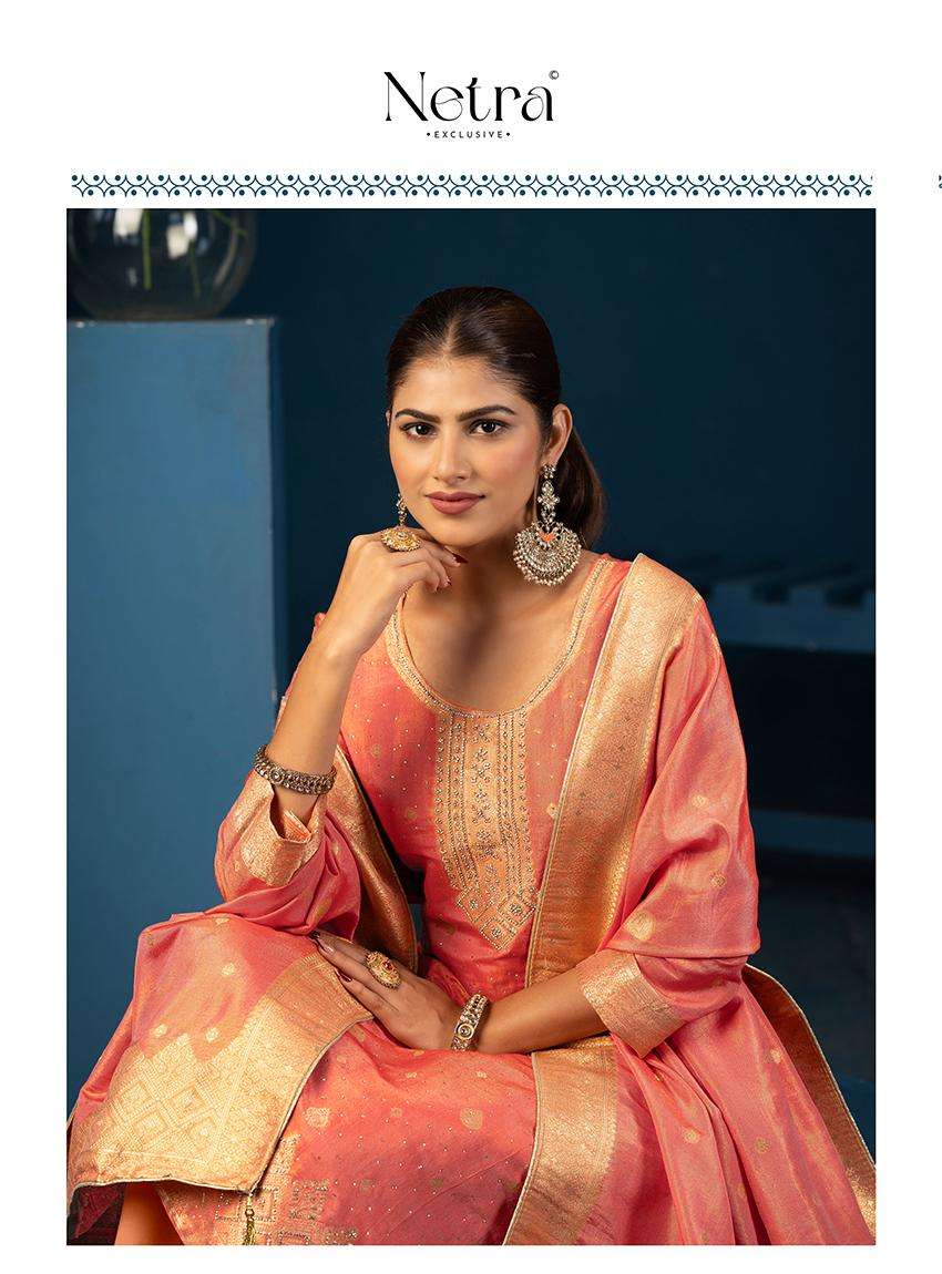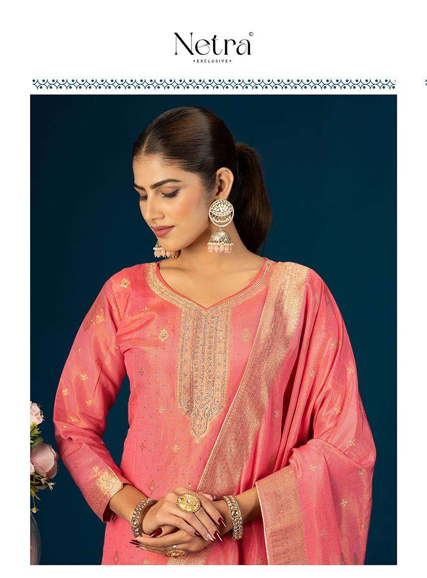 Catalogue: | NETRA PRIYA URE SIMMER SILK BACK & SLEEVE SUIT WITH ZARKAN DIAMOND WORK |