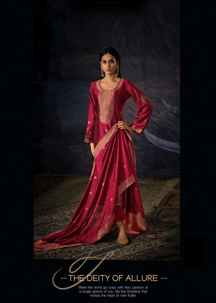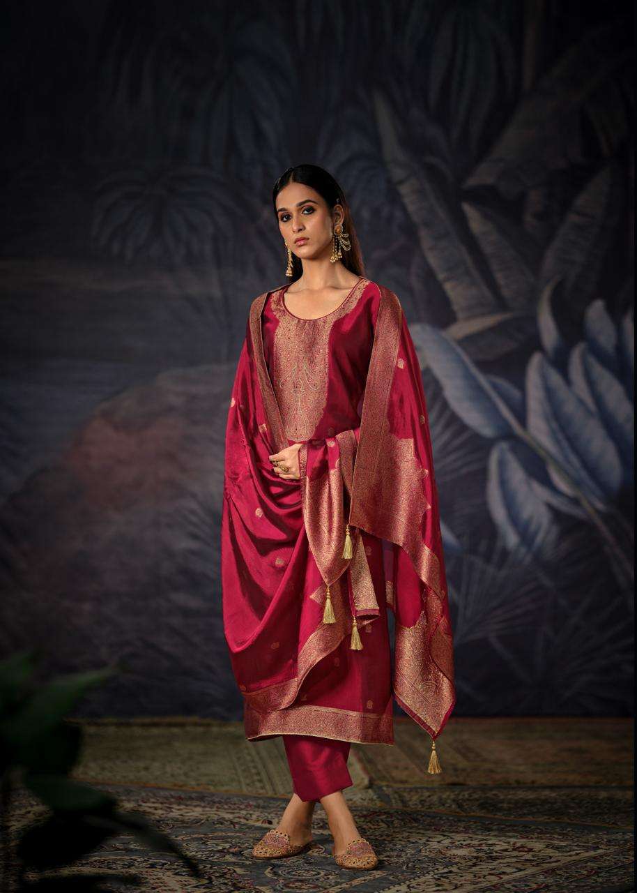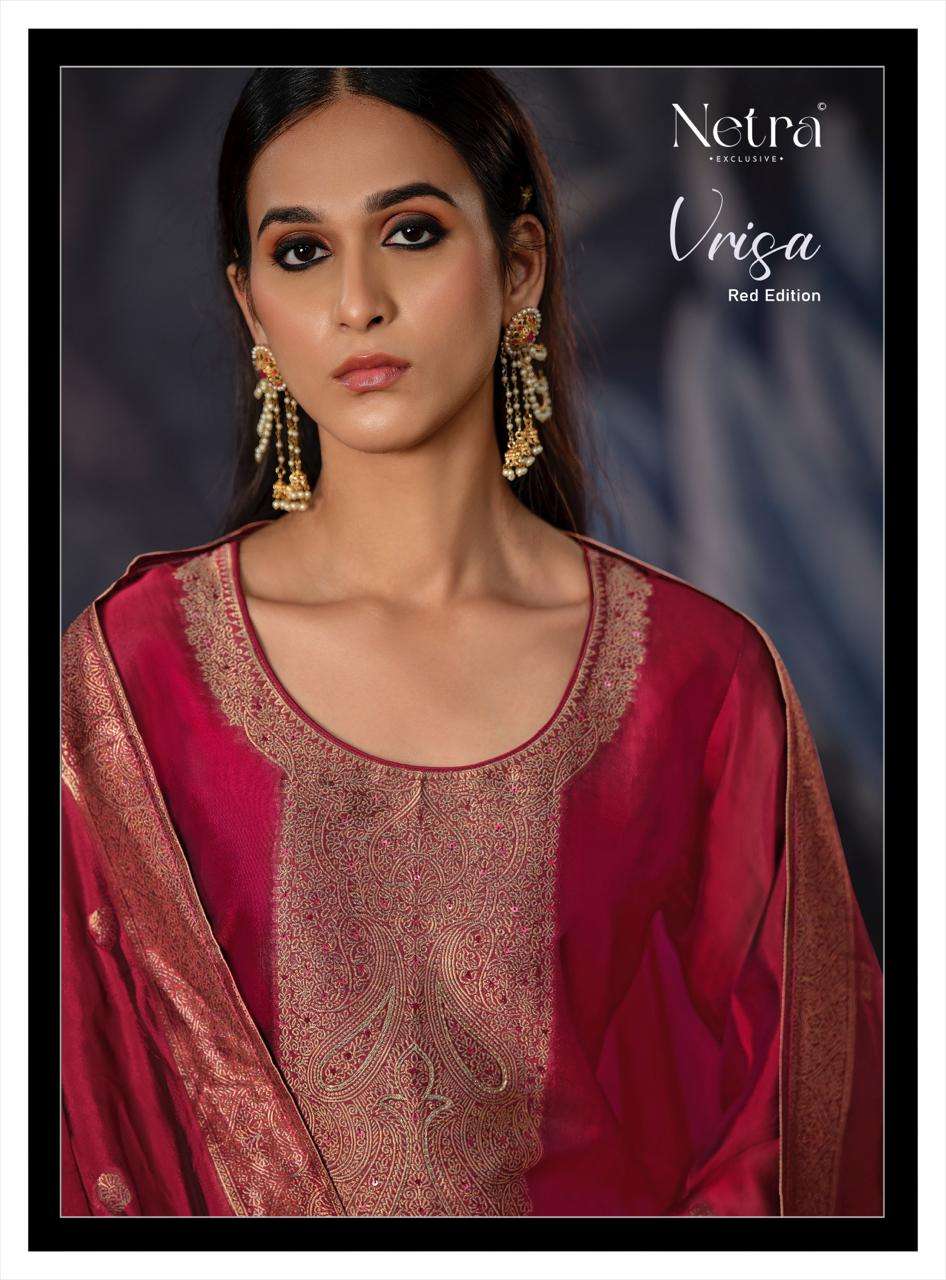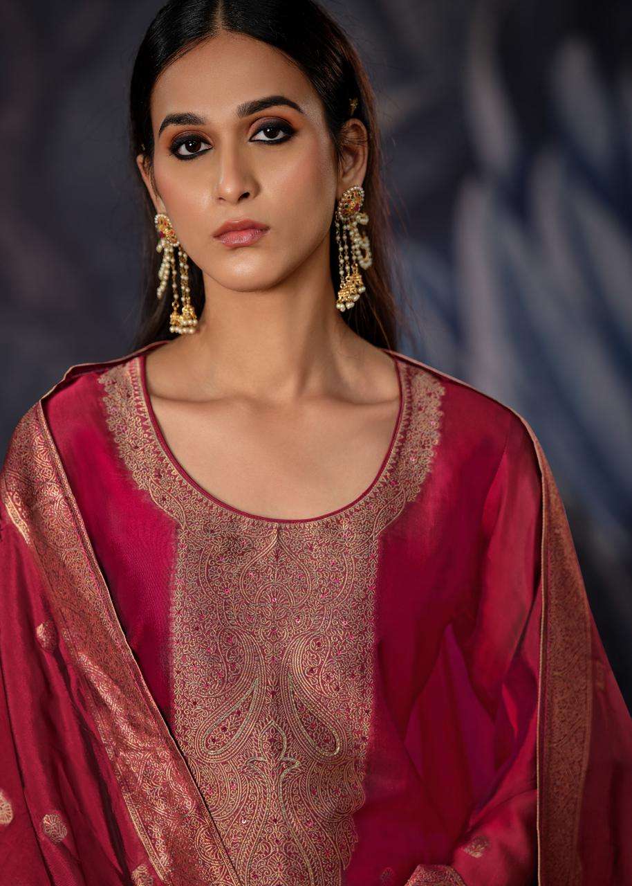 Catalogue: | NETRA VRISA RED EDITION PREMIUM VISCOSE WOVEN SILK SUIT WITH HAND WORK |