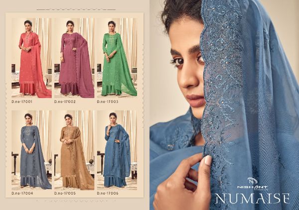 Nishant Fashion Presents Numaise 17001-17006 Series Pure Modal Silk With Embroidery Work Salwar Suit Collection