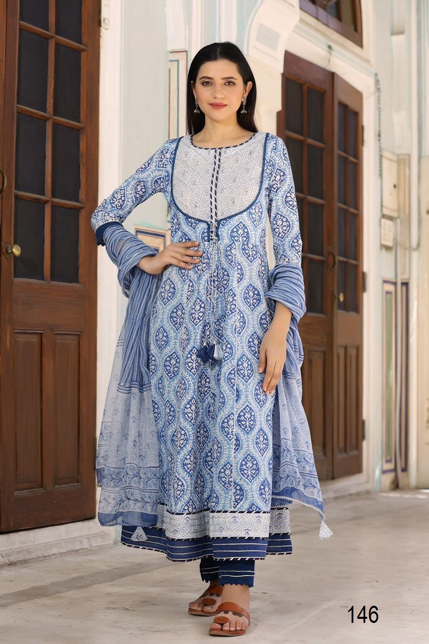 Nitya Presents 146 Series Full Flair Pure Cotton Graceful With Handwork On Yoke Fancy Party Wear Anarkali Suits Collection