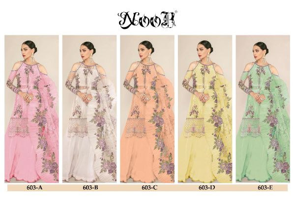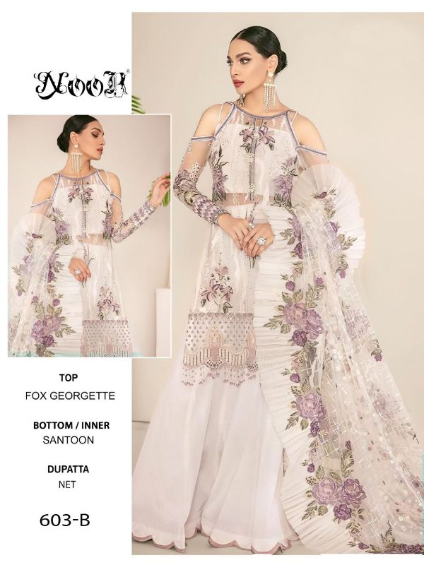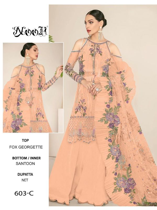 Noor 603 Colours Presents 603a-e Series Fox Georgette Fancy Pakistani Suits Collection #1532