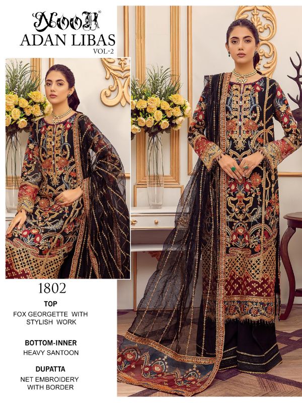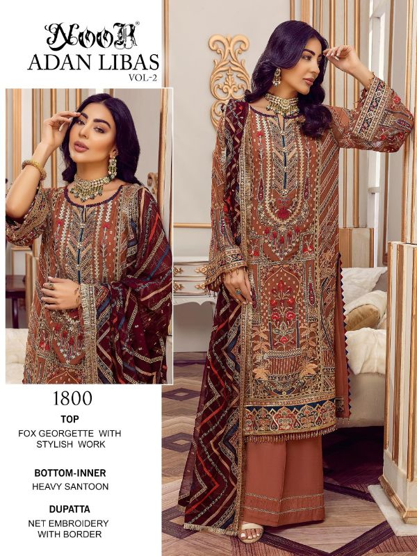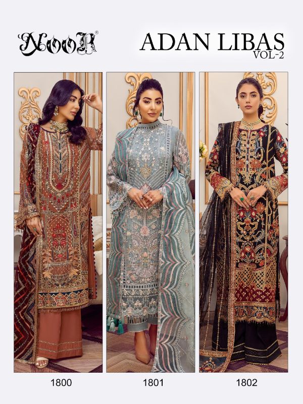 Noor Presents Adan Libas Vol-2 1800,1801,1802 Series Georgette With Heavy Embroidery Pakistani Suits Collection
